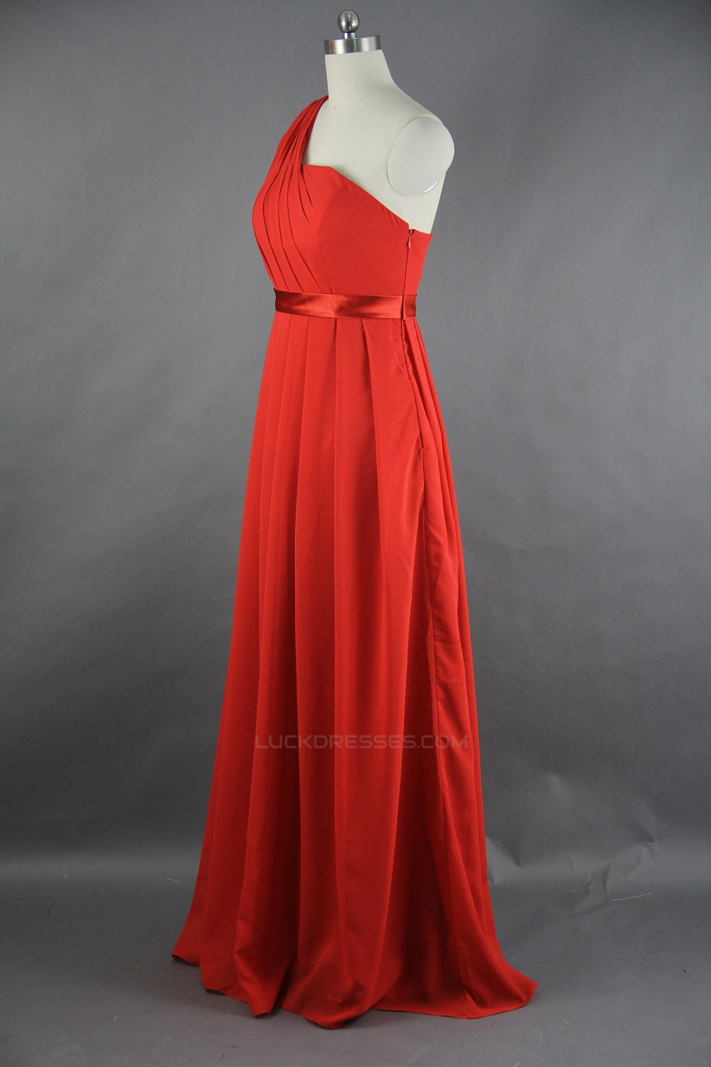 A-Line One-Shoulder Long Chiffon Bridesmaid Dresses/Evening Dresses BD010533