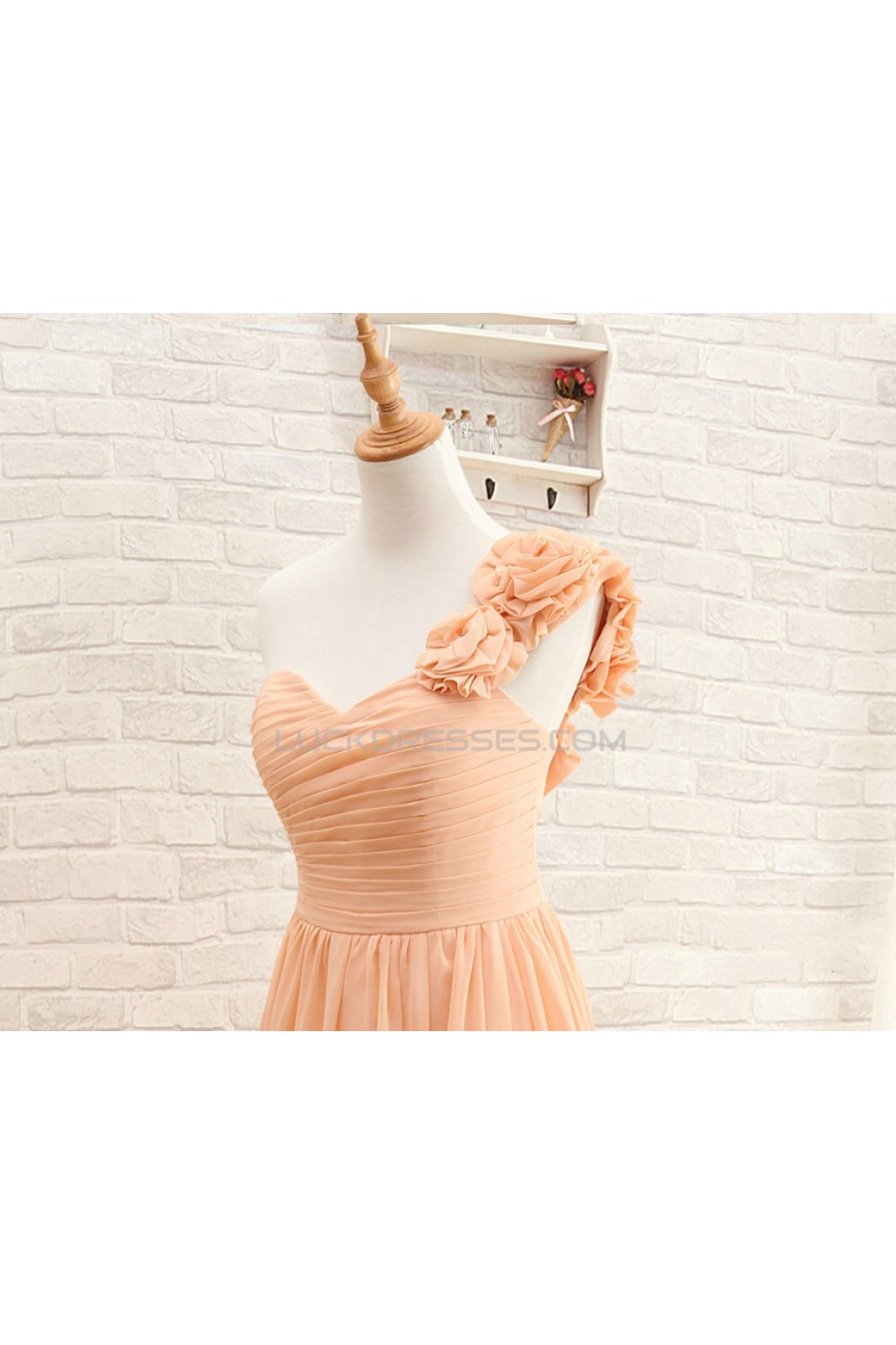 A-Line One-Shoulder Long Chiffon Prom Evening Bridesmaid Dresses ED011508