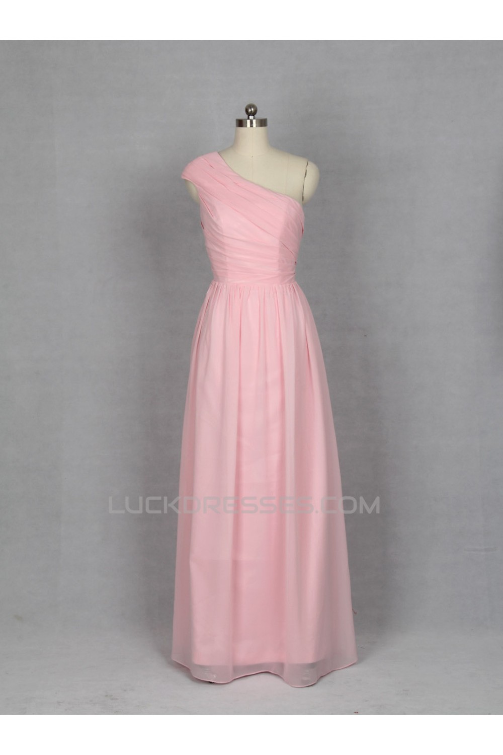A-Line One-Shoulder Long Pink Chiffon Bridesmaid Dresses/Evening Dresses BD010532