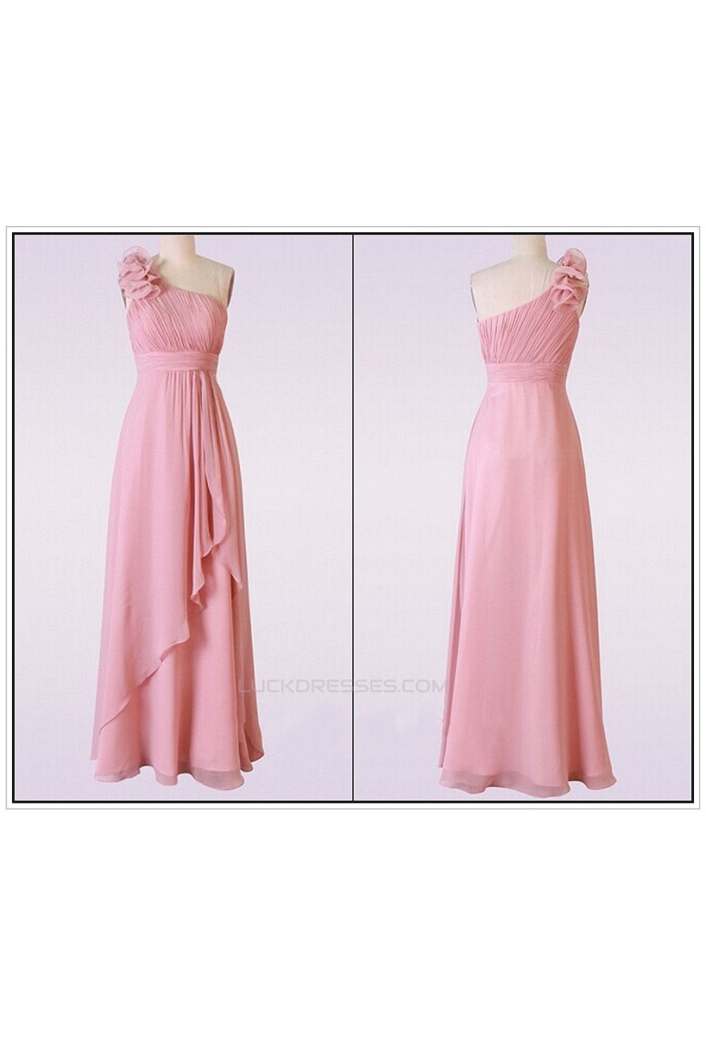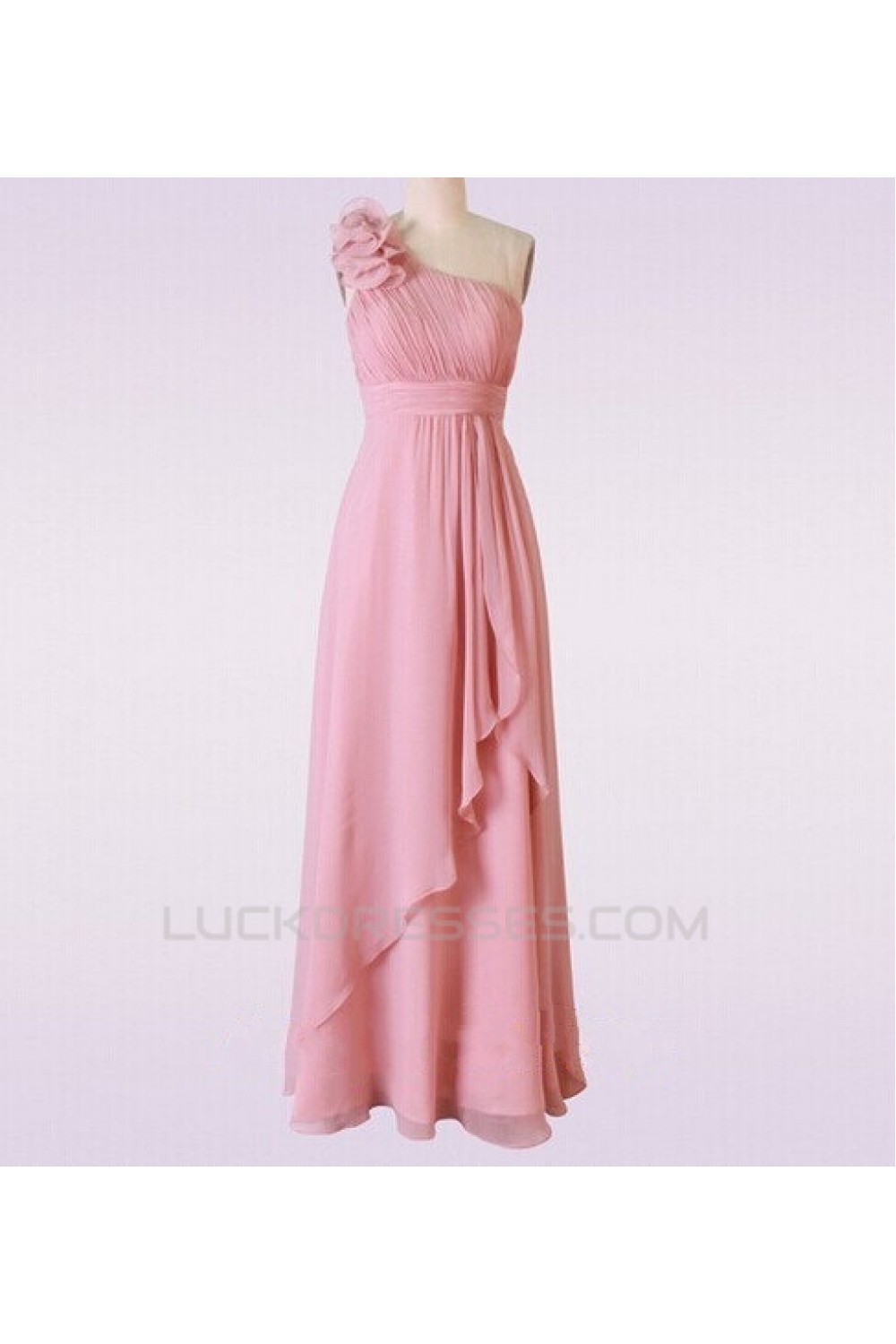 A-Line One-Shoulder Long Pink Chiffon Bridesmaid Dresses/Wedding Party Dresses BD010666