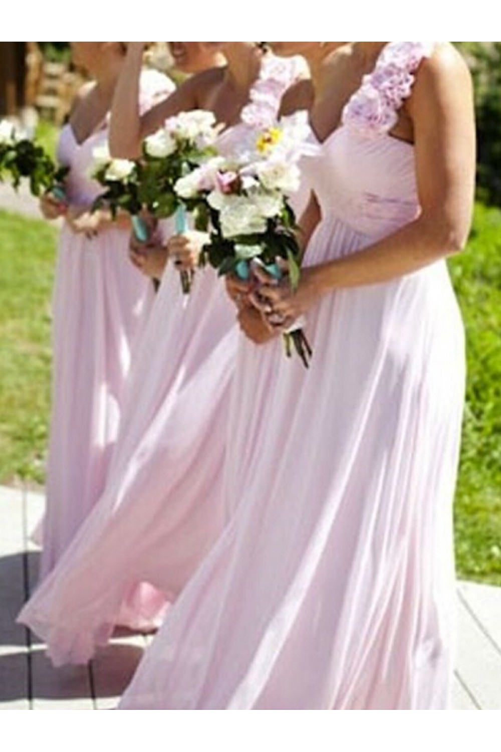 A-Line One-Shoulder Long Pink Chiffon Floor Length Bridesmaid Dresses 3010423