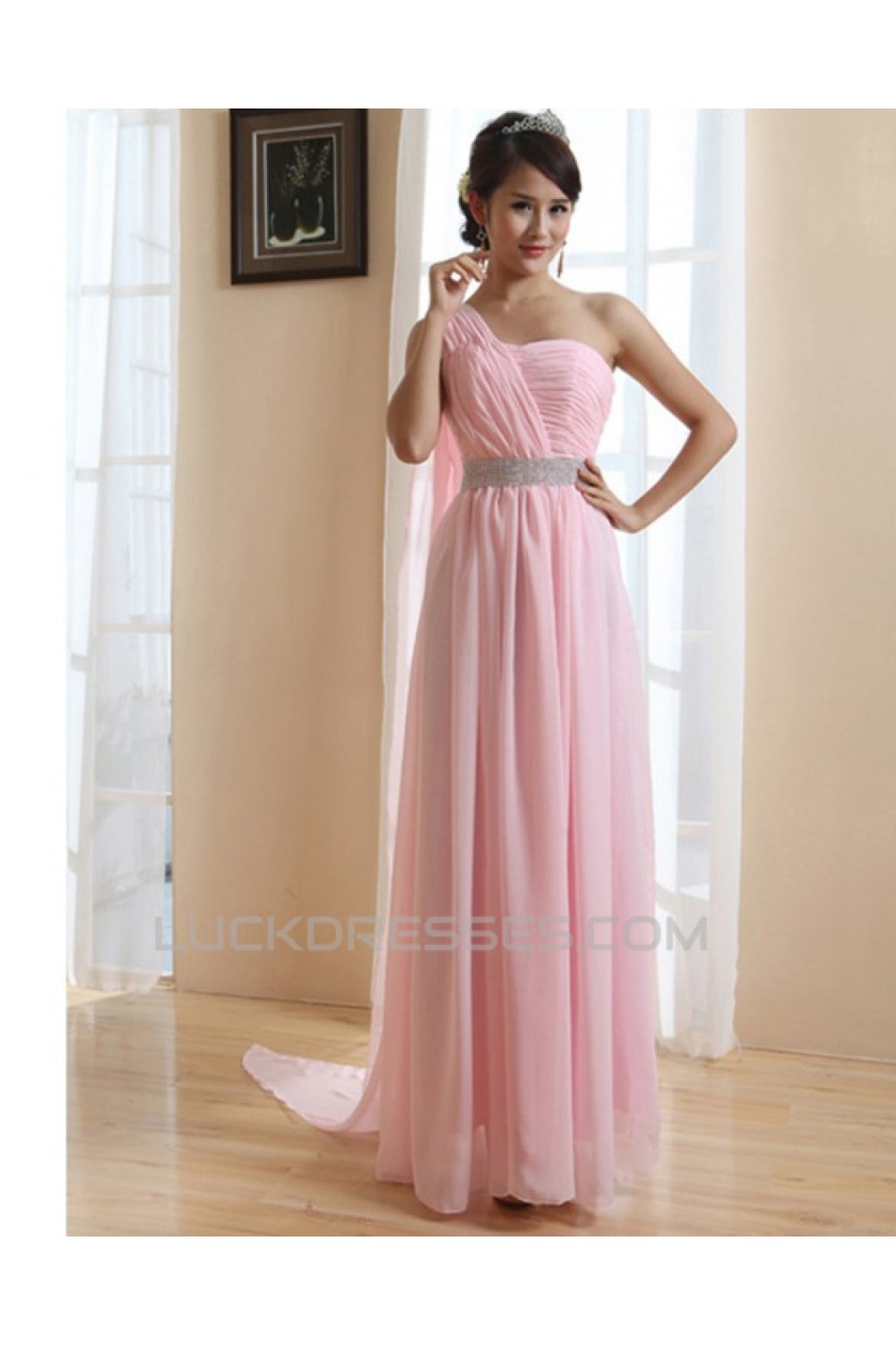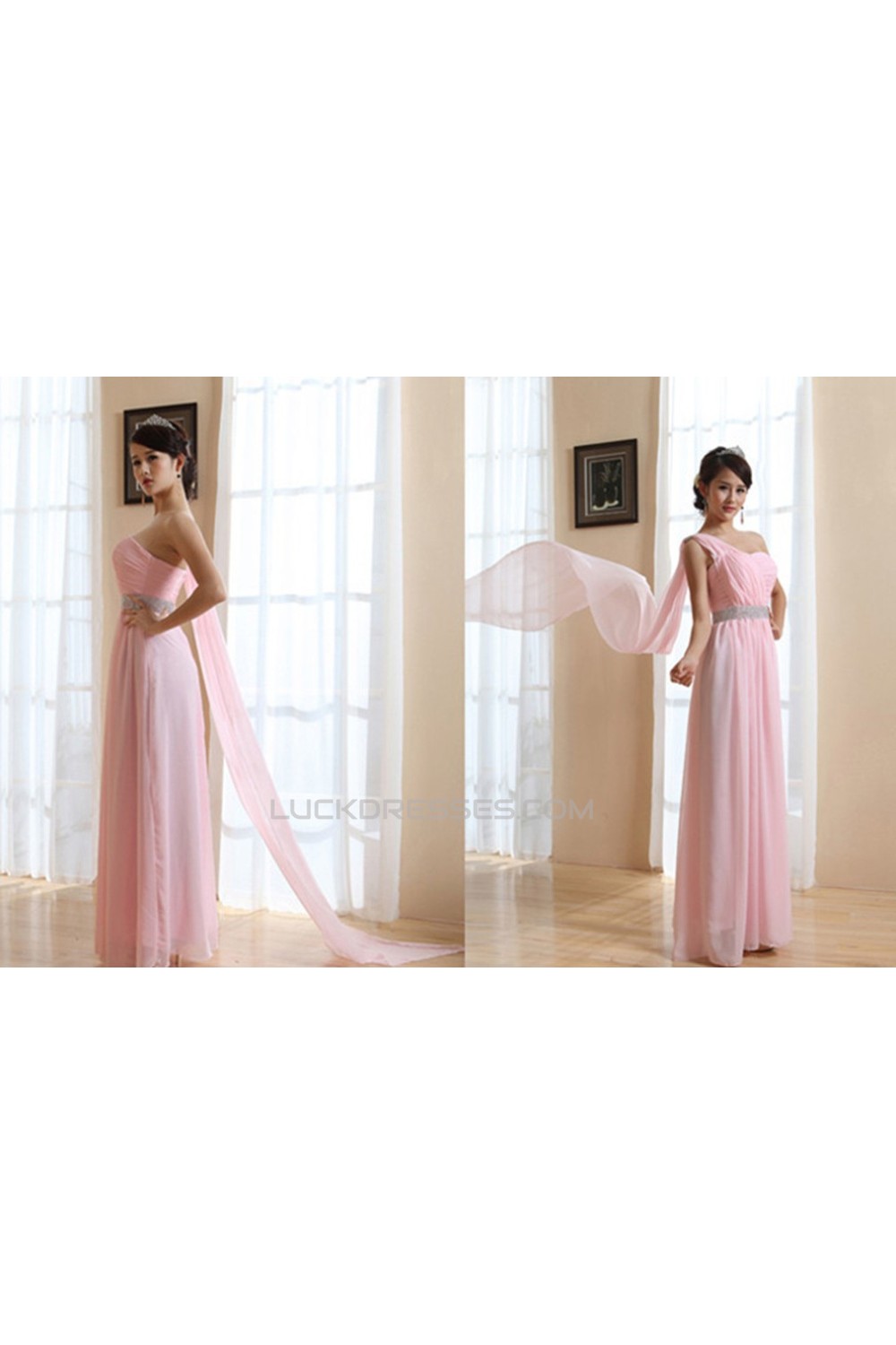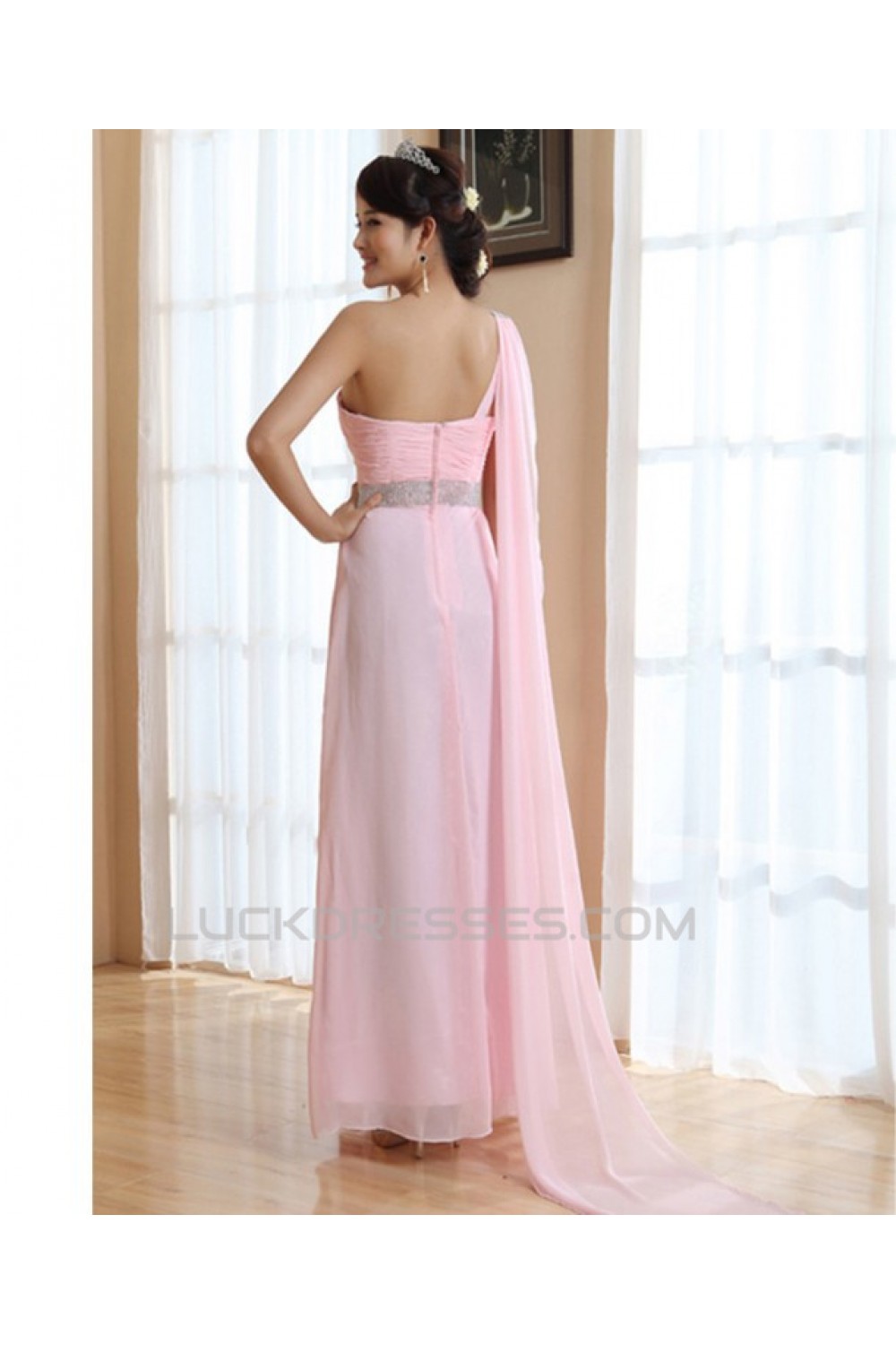 A-Line One-Shoulder Long Pink Chiffon Prom Evening Bridesmaid Dresses ED011210