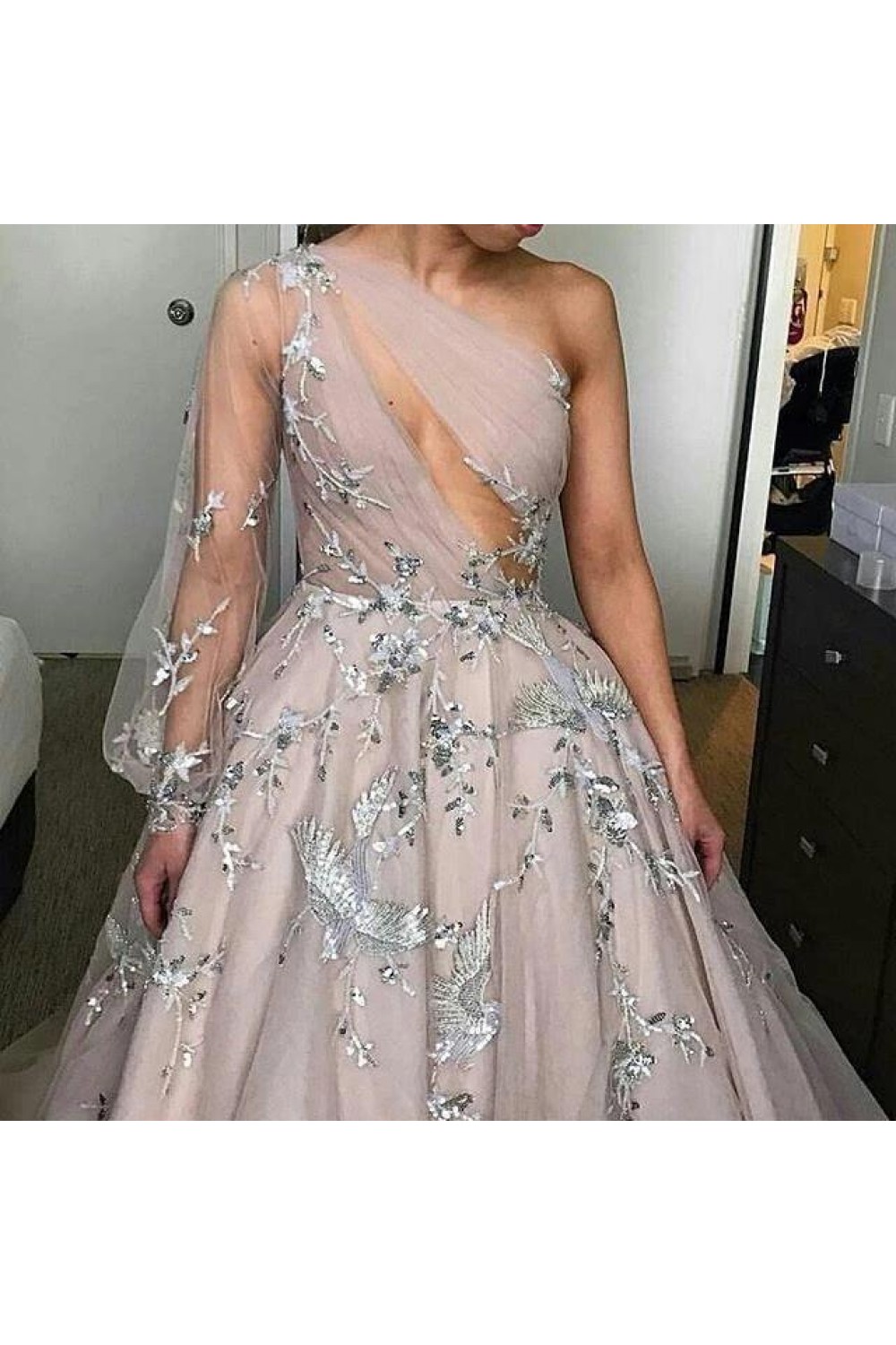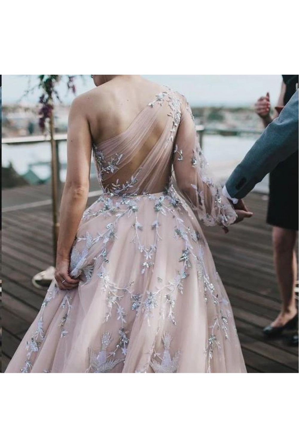 A-Line One-Shoulder Long Prom Dress Formal Evening Dresses 601532