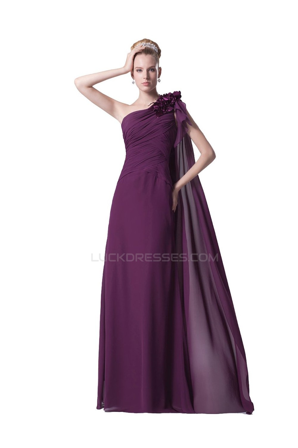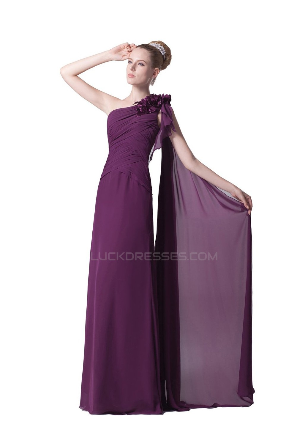 A-Line One-Shoulder Long Purple Chiffon Prom Evening Formal Party Dresses ED010429