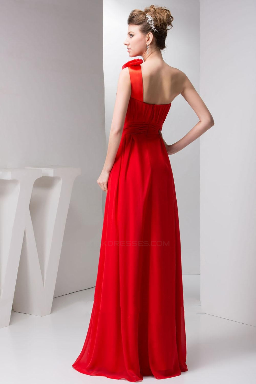 A-Line One-Shoulder Red Long Chiffon Prom Evening Formal Bridesmaid Dresses ED010919