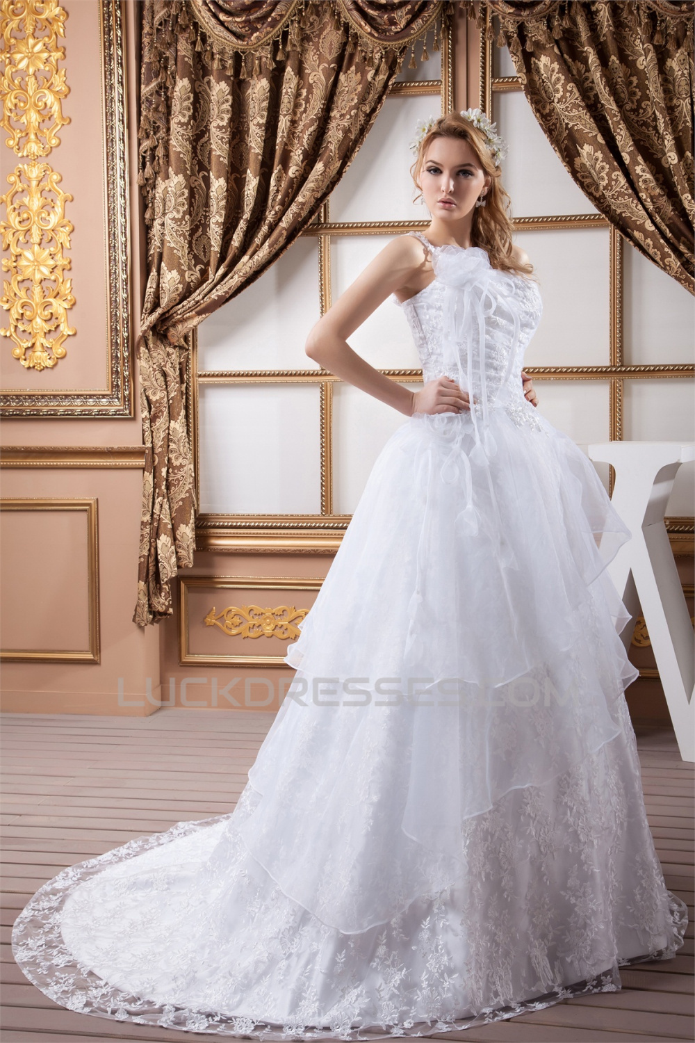 -50% A-Line One-Shoulder Satin Sleeveless Lace Wedding Dresses 2030533