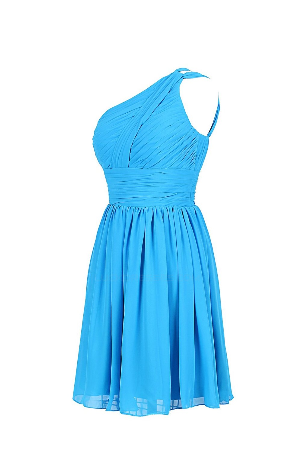 A-Line One-Shoulder Short Blue Chiffon Bridesmaid Dresses/Wedding Party Dresses BD010011