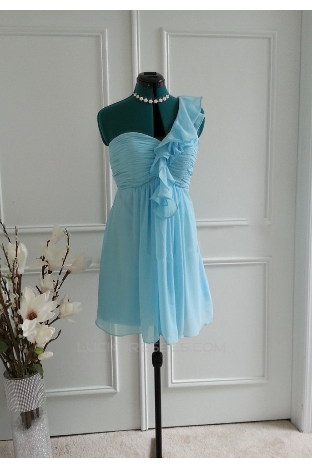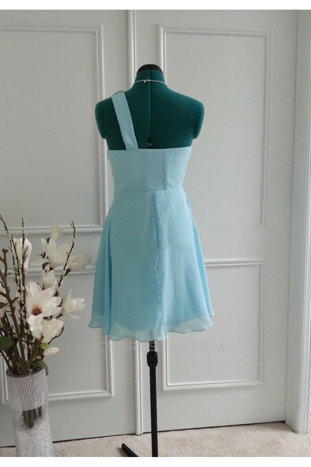 A-Line One-Shoulder Short Blue Chiffon Bridesmaid Dresses/Wedding Party Dresses BD010765