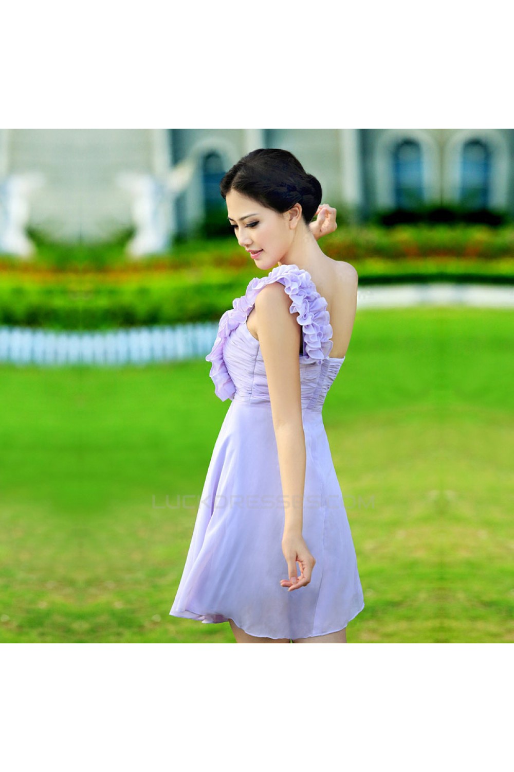 A-Line One-Shoulder Short Chiffon Prom Evening Bridesmaid Dresses ED011334