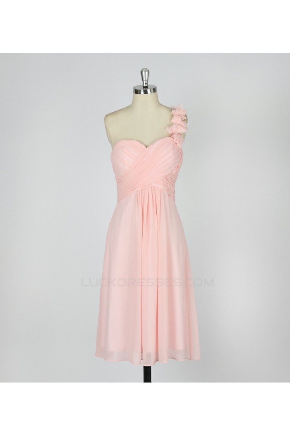 A-Line One-Shoulder Short Pink Chiffon Bridesmaid Dresses/Evening Dresses BD010640