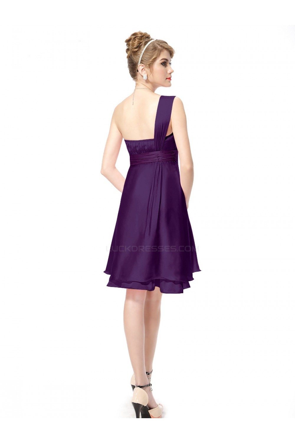 A-Line One-Shoulder Short Purple Bridesmaid Dresses/Wedding Party Dresses BD010210