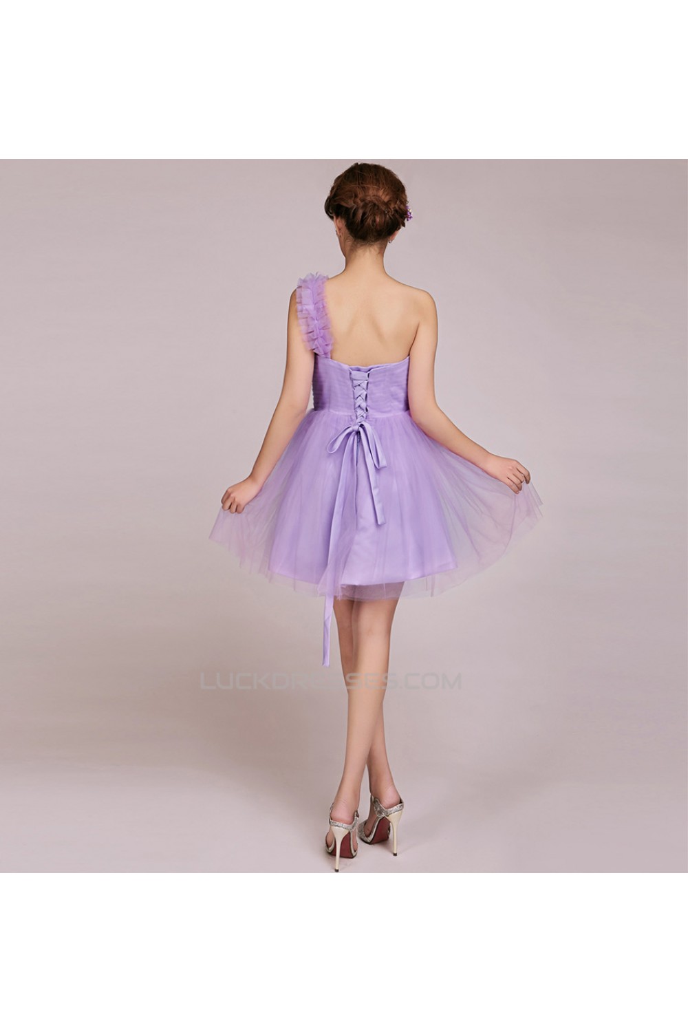 A-Line One-Shoulder Short Tulle Prom Evening Formal Bridesmaid Dresses ED011233