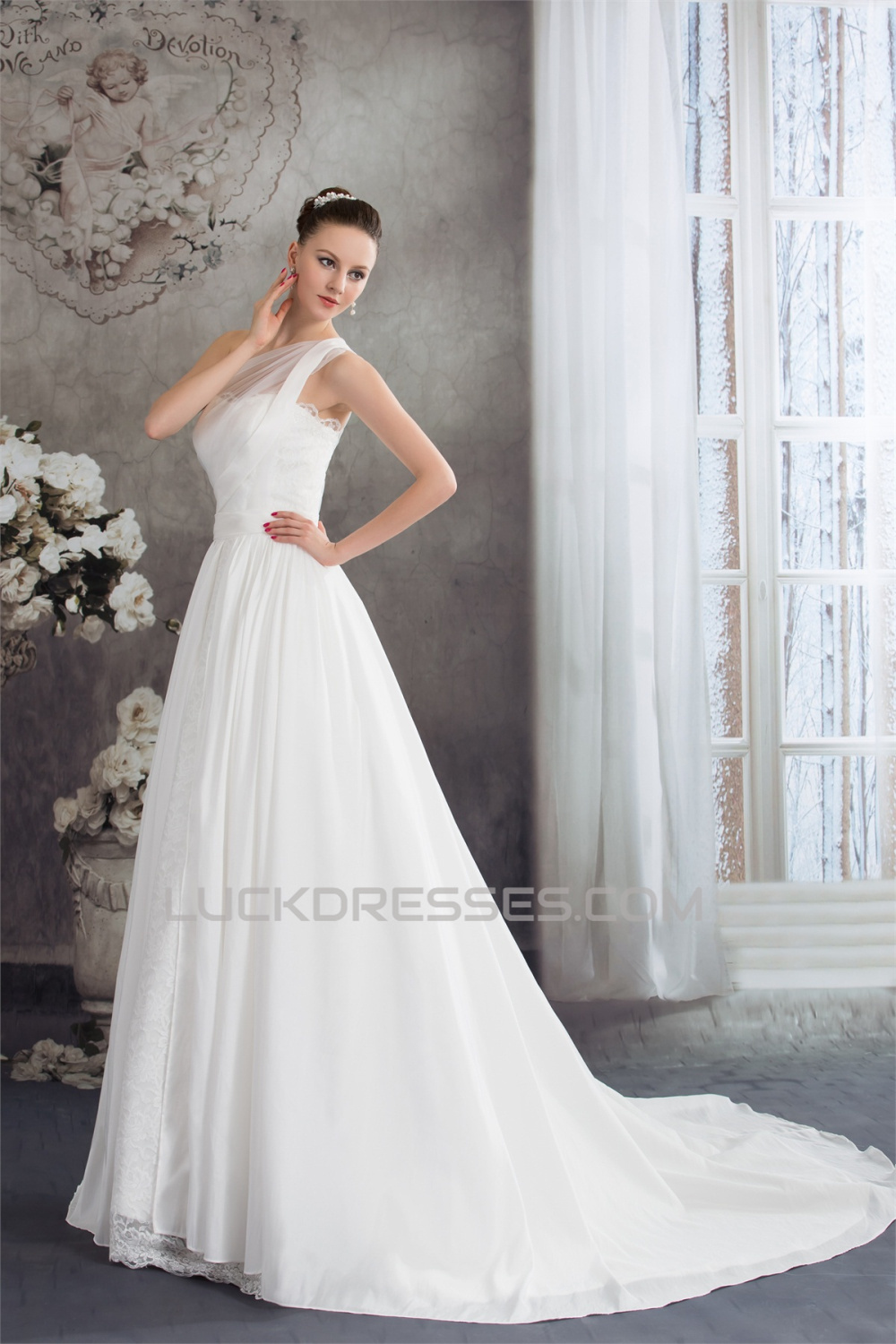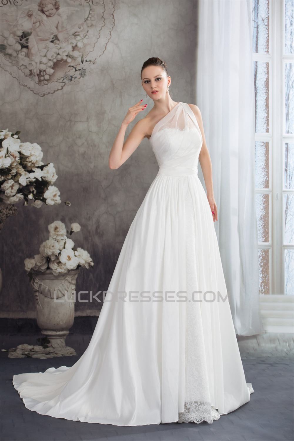 -50% A-Line One-Shoulder Sleeveless Lace Wedding Dresses 2030246