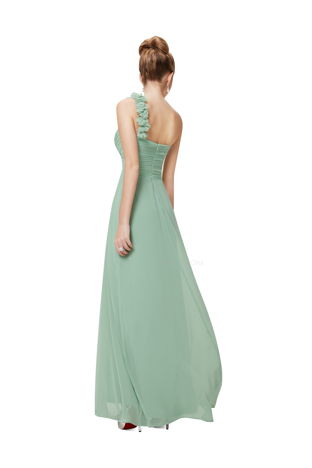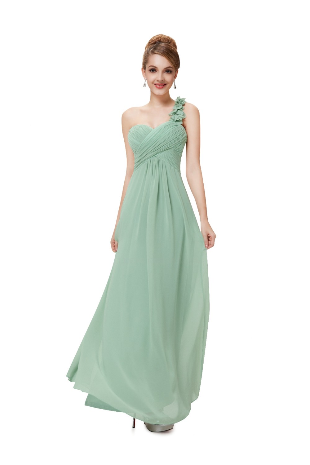 A-Line One-Shoulder Sweetheart Long Green Chiffon Bridesmaid Dresses/Evening Dresses BD010284