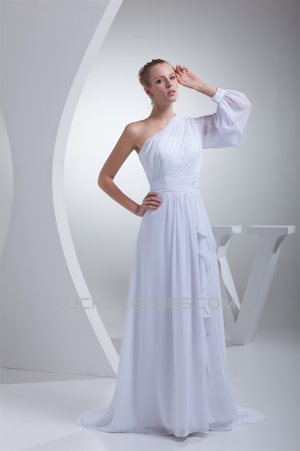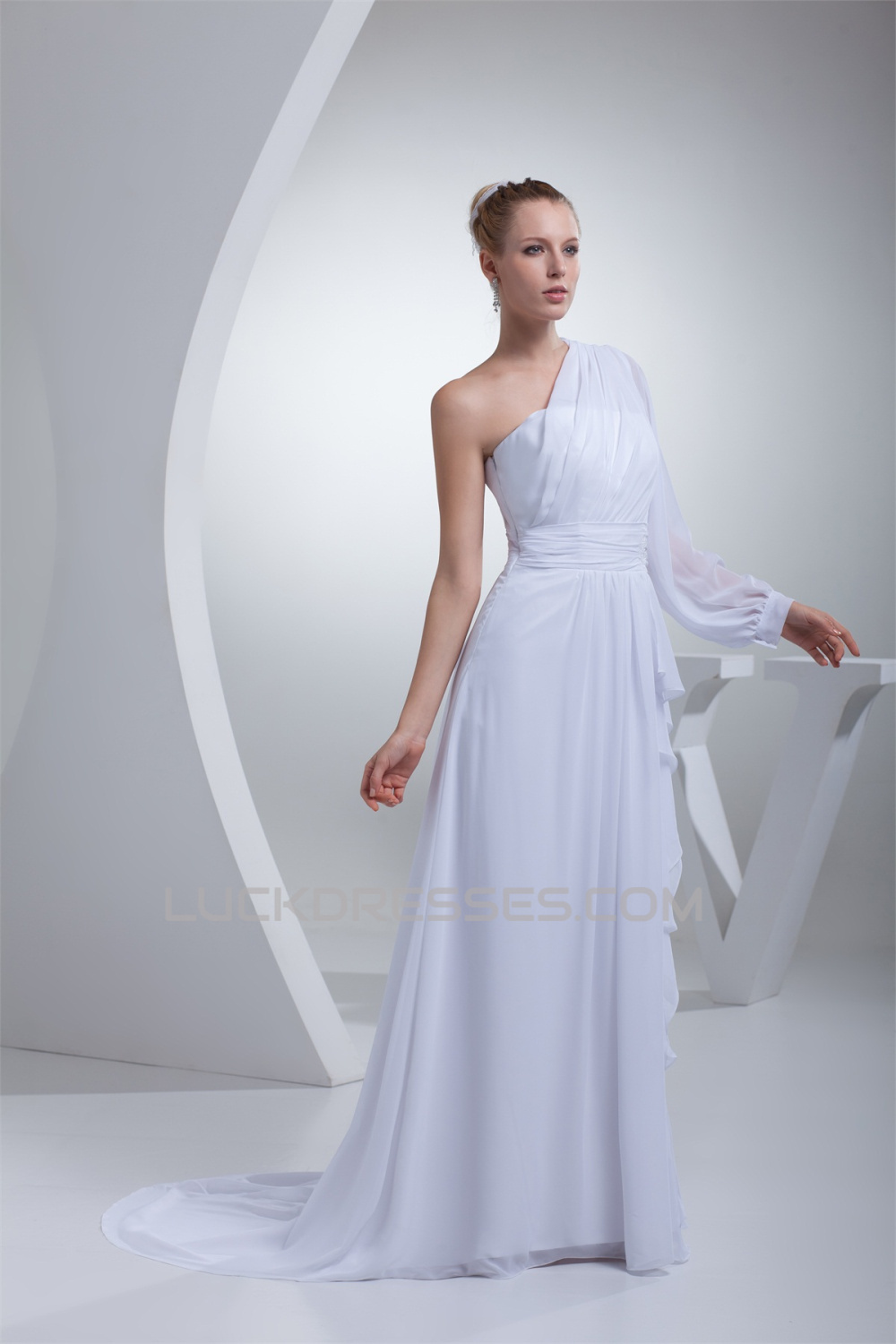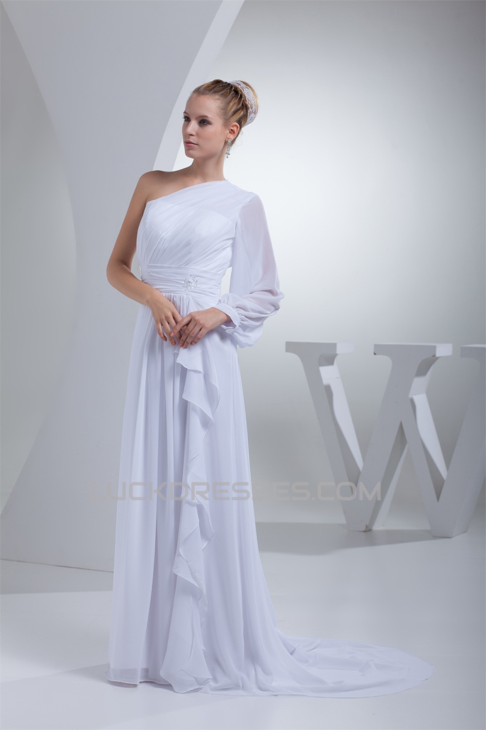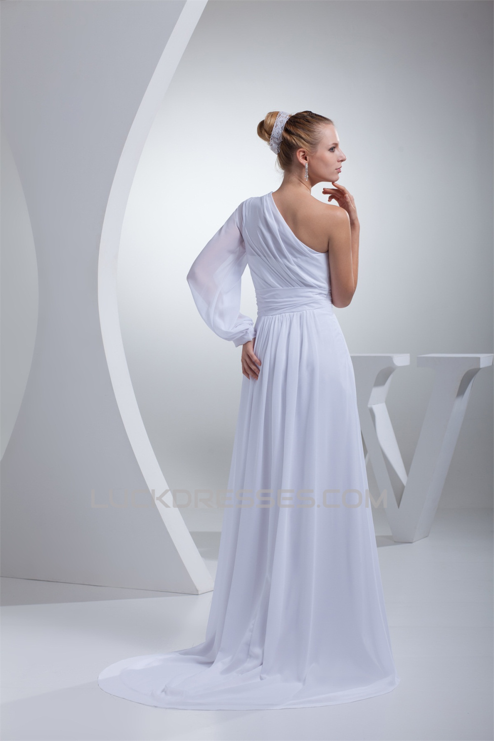 A-Line One Sleeve Chiffon Sweep Train Wedding Dresses 2030109