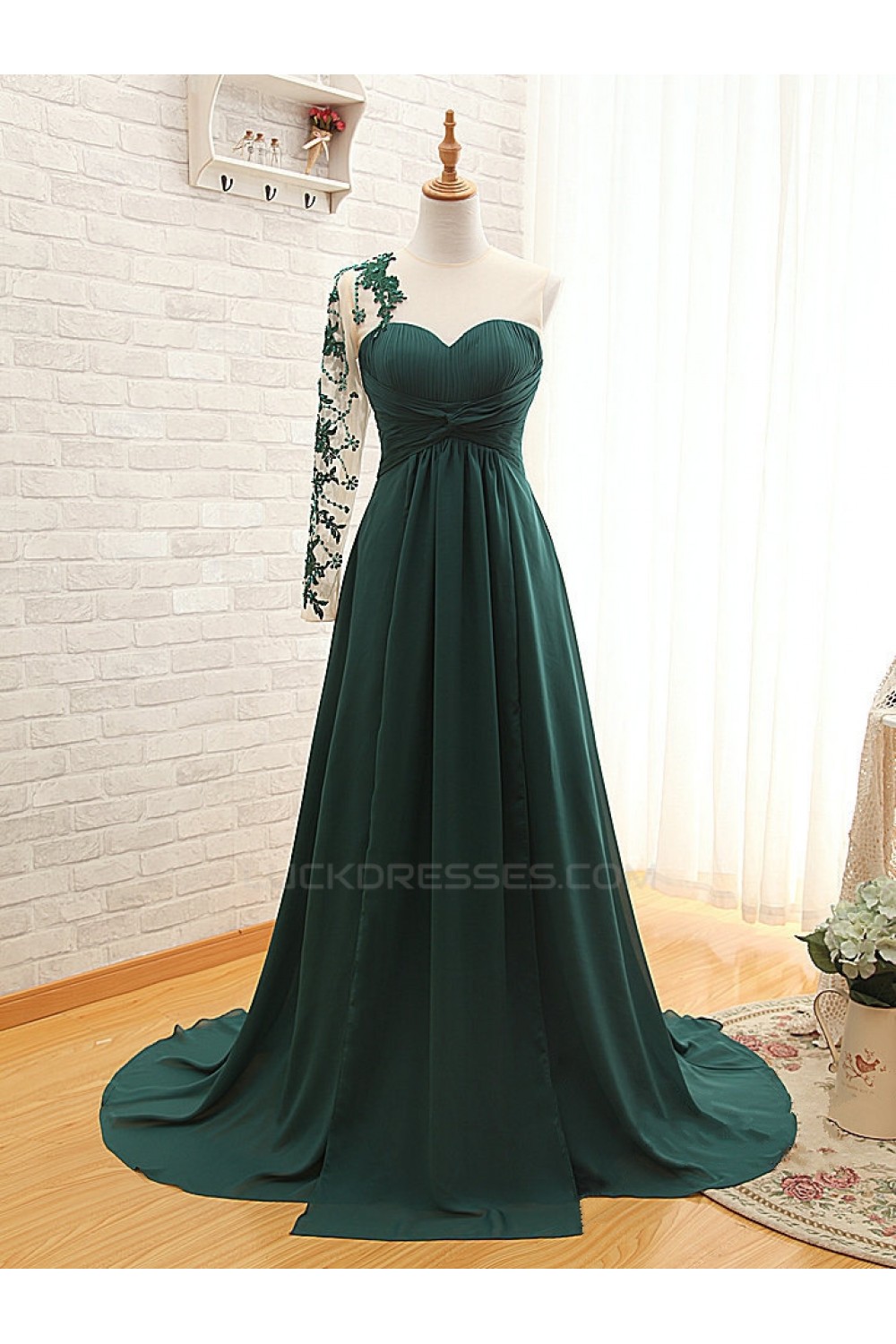 A-Line One Sleeve Long Chiffon Mother of the Bride Dresses M010105