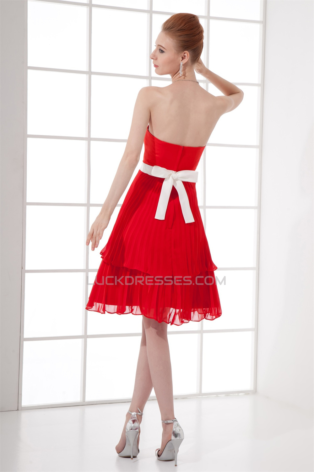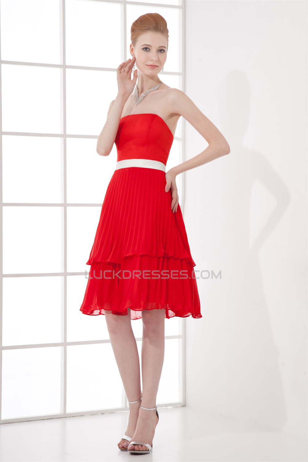 A-Line Pleats Chiffon Knee-Length Red Bridesmaid Dresses 02010501