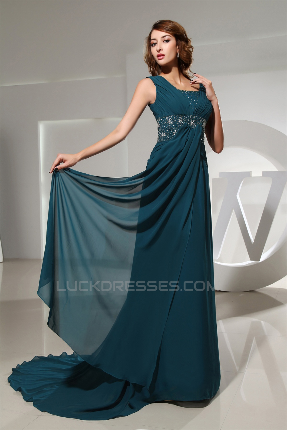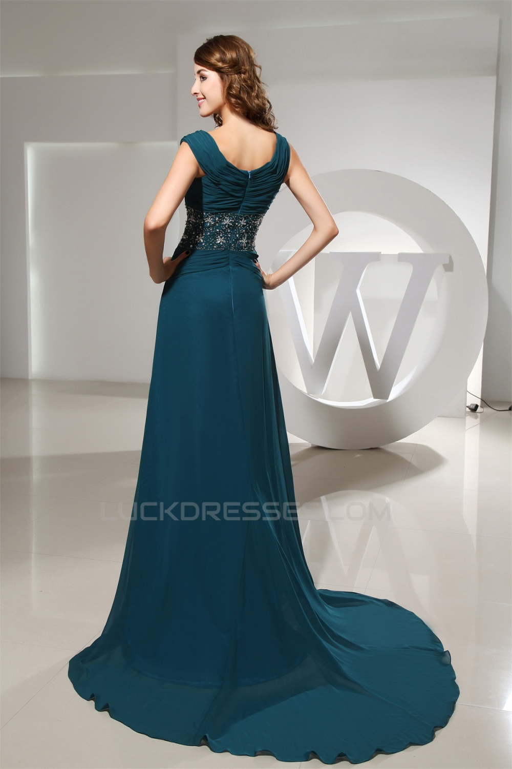 A-Line Puddle Train Capped Sleeves Chiffon Beaded Long Mother of the Bride Dresses 2040060