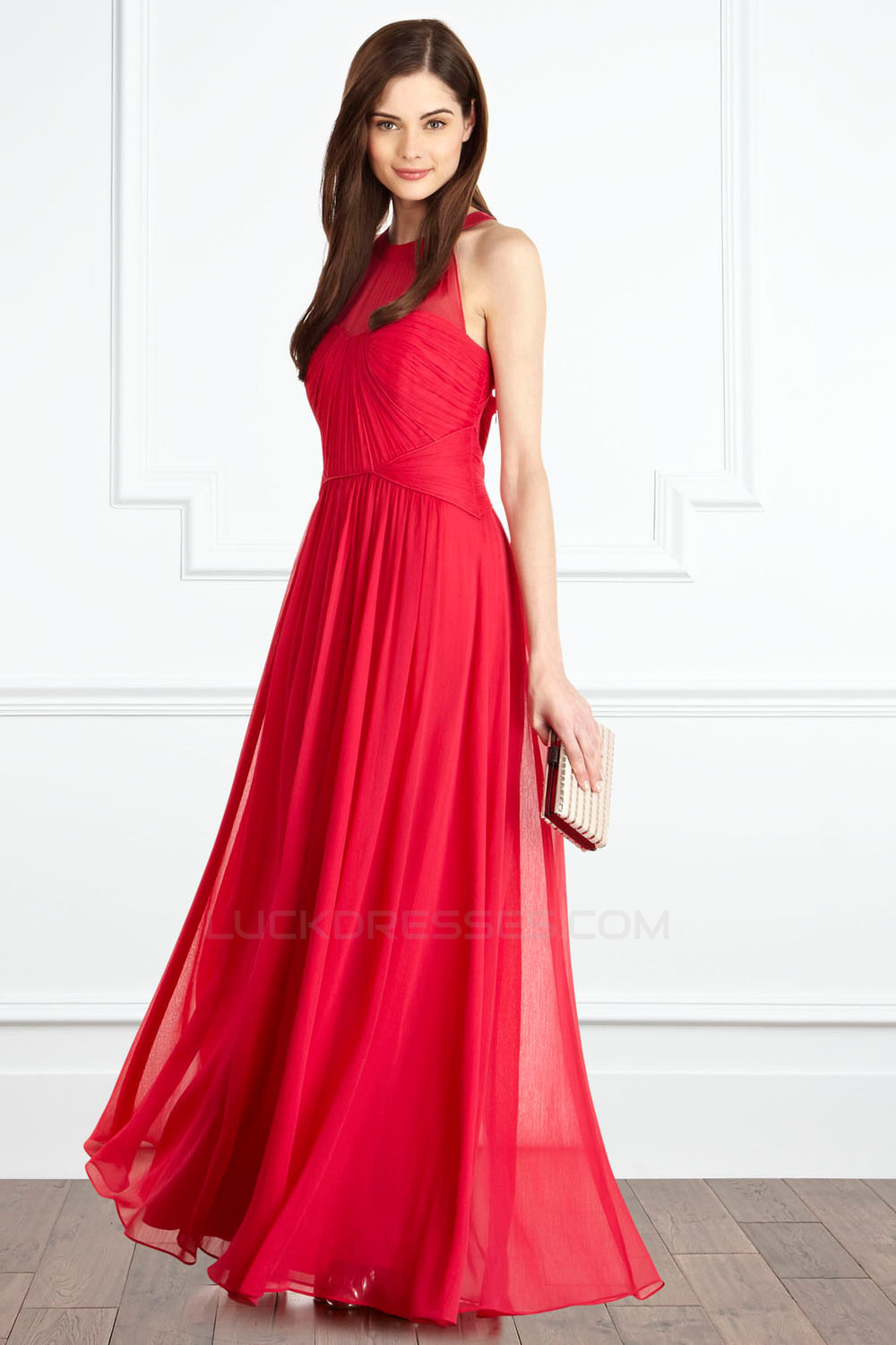 A-Line Red Long Chiffon Prom Evening Party Dresses 02021007