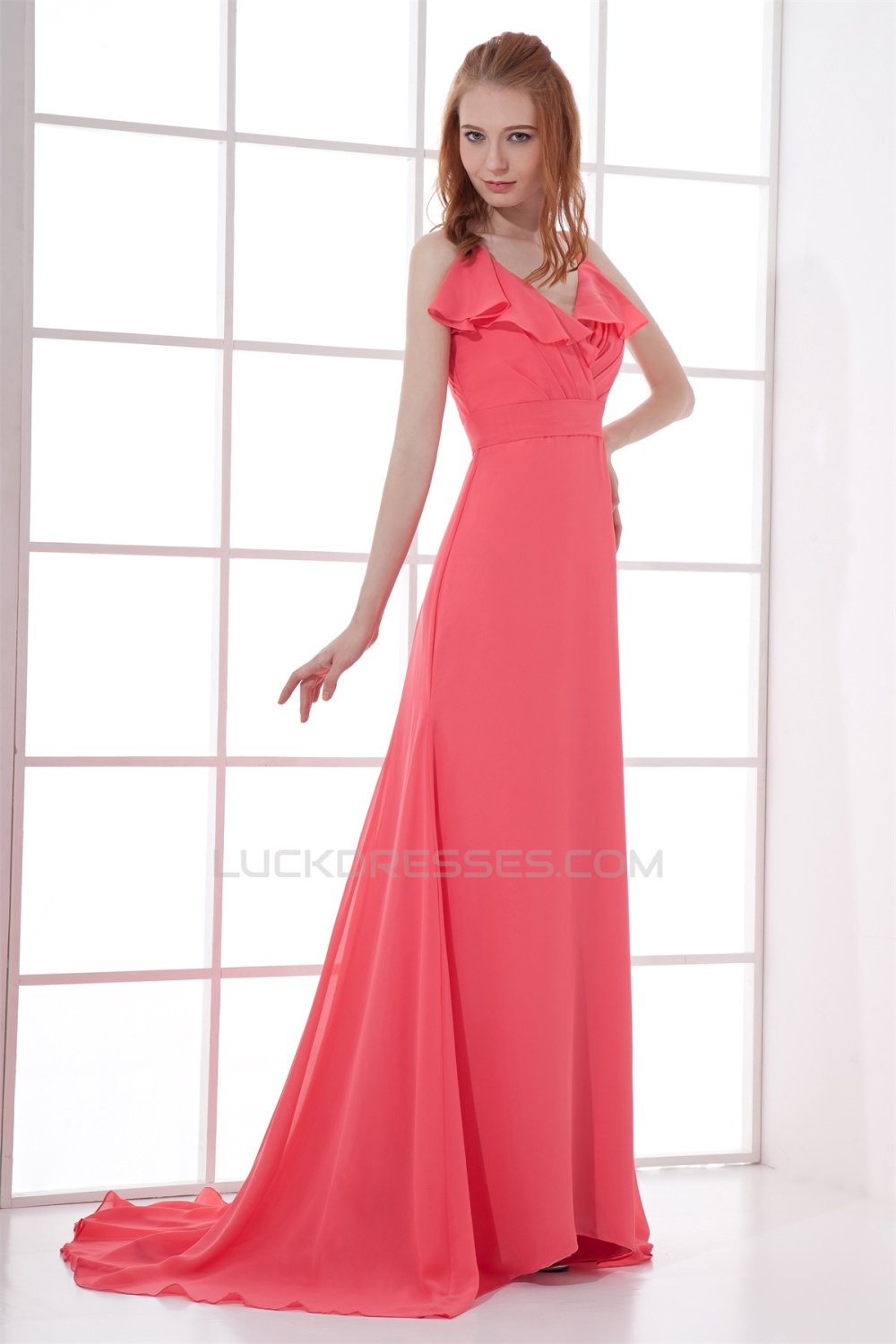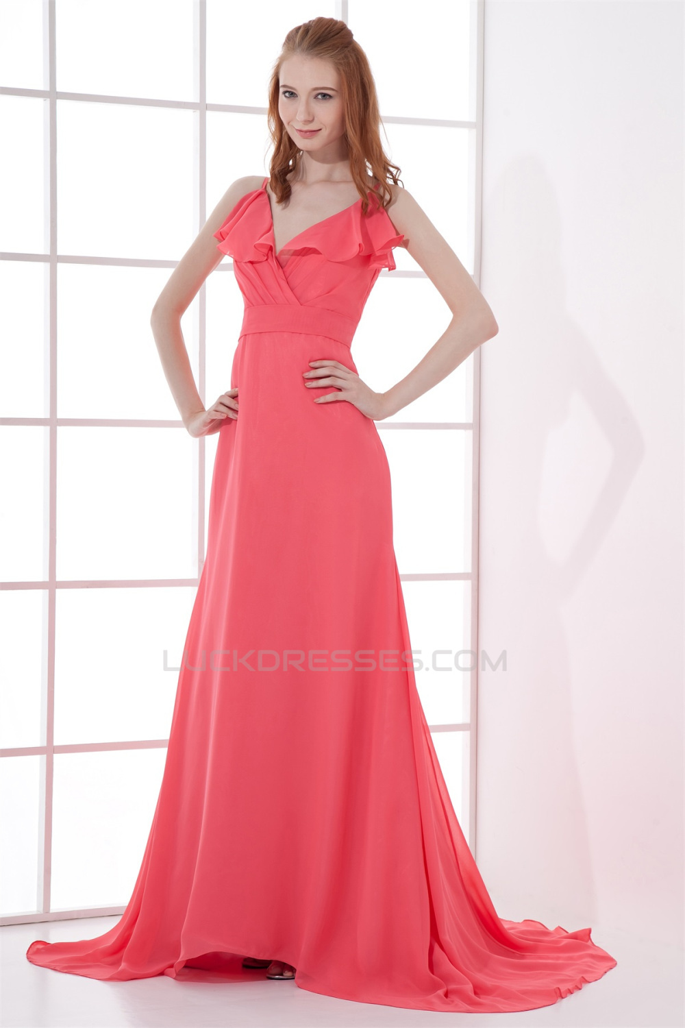 A-Line Ruffles Chiffon Long Bridesmaid/Evening Dresses 02010139