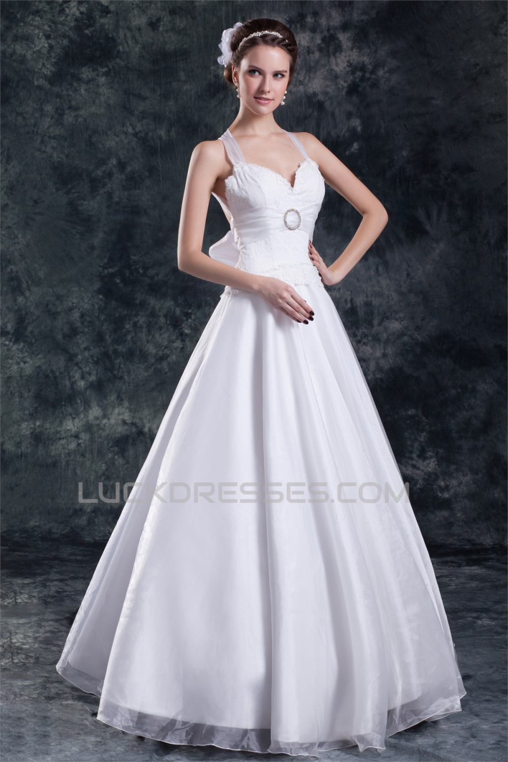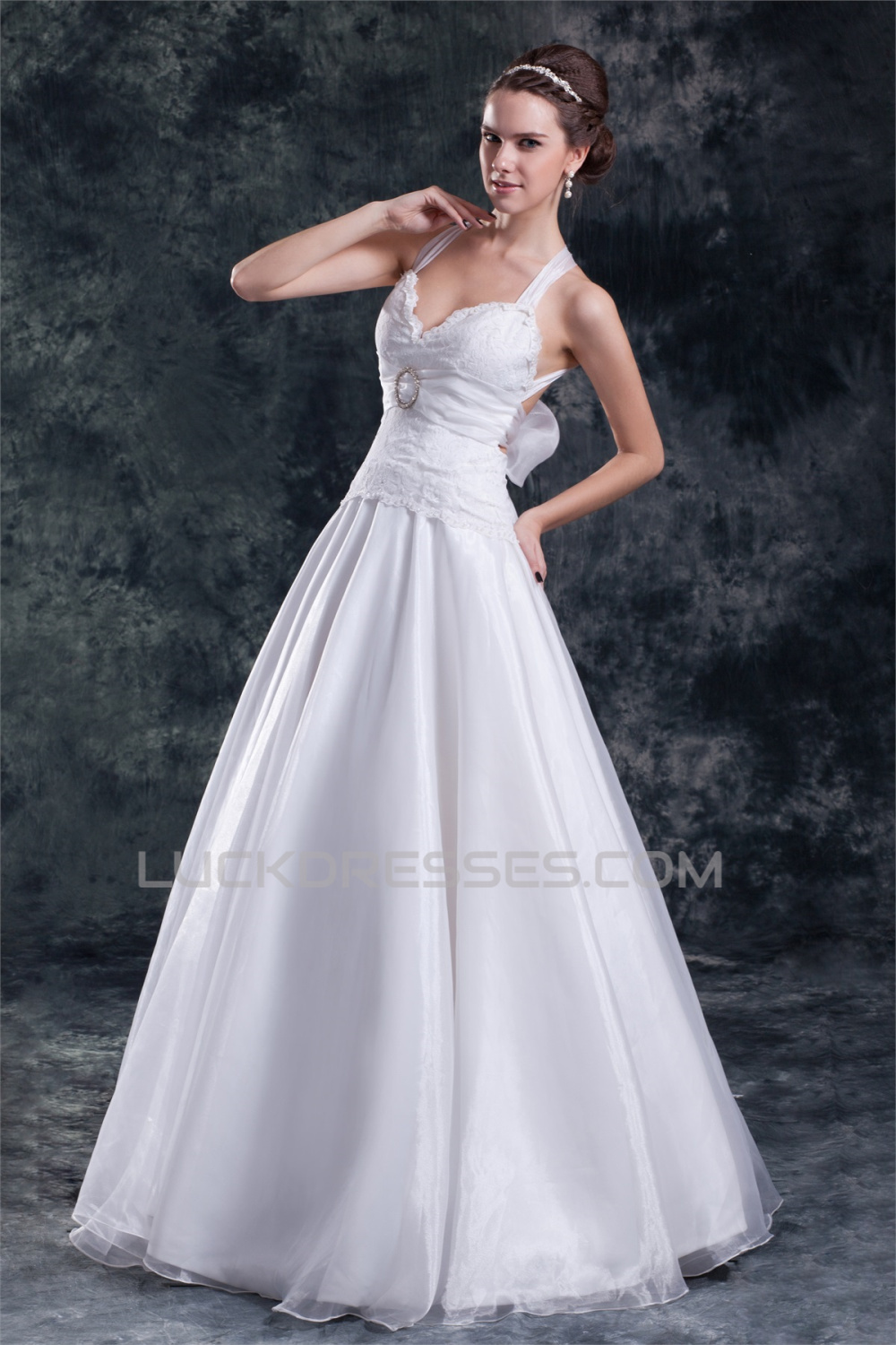 -50% A-Line Satin Lace Organza Halter Sleeveless Embellished Wedding Dresses 2031080