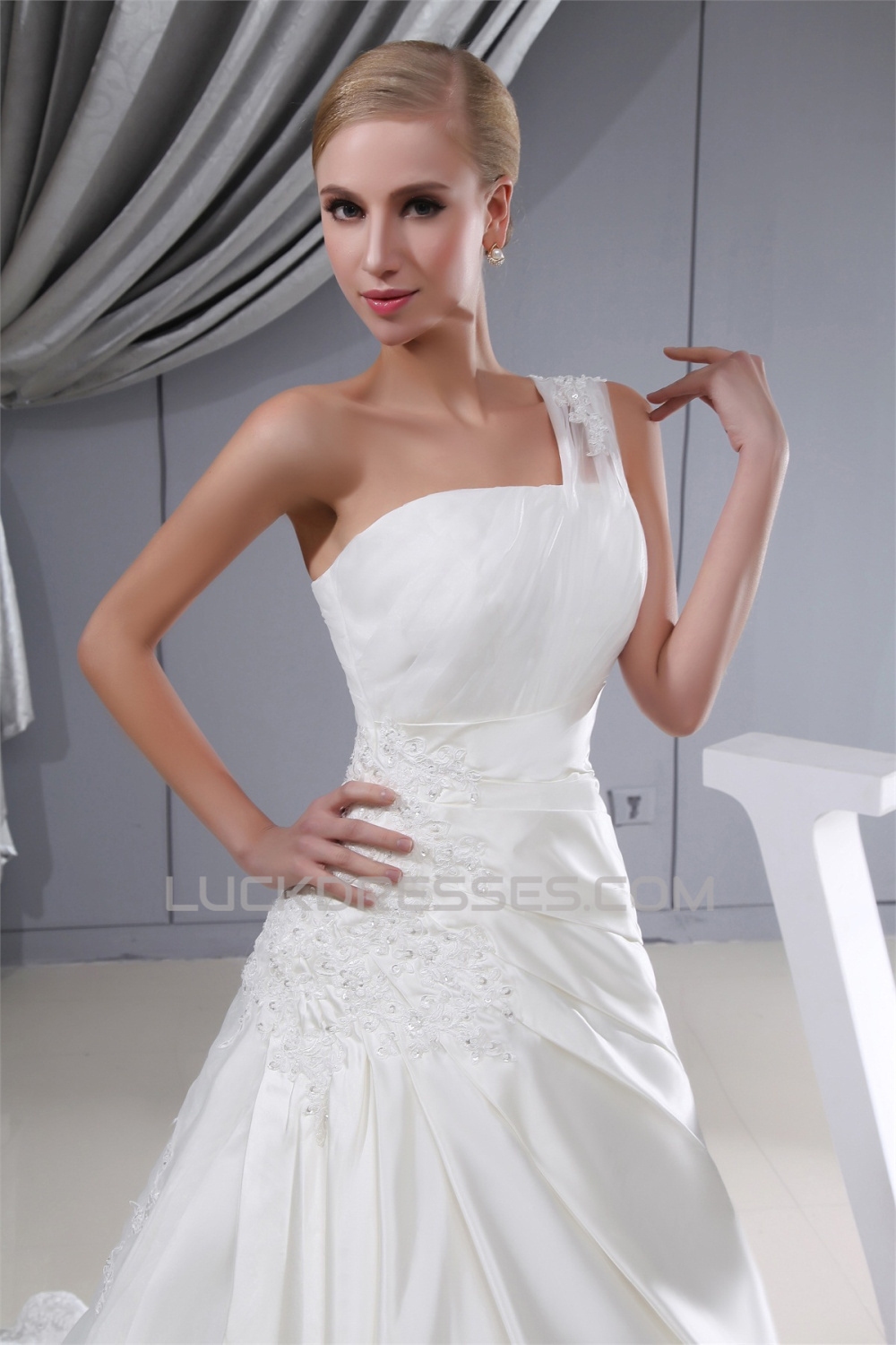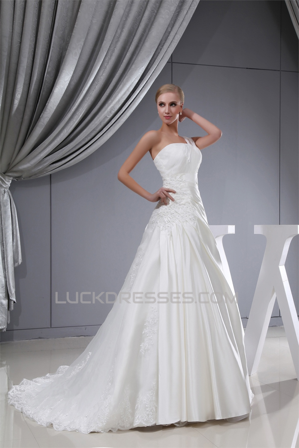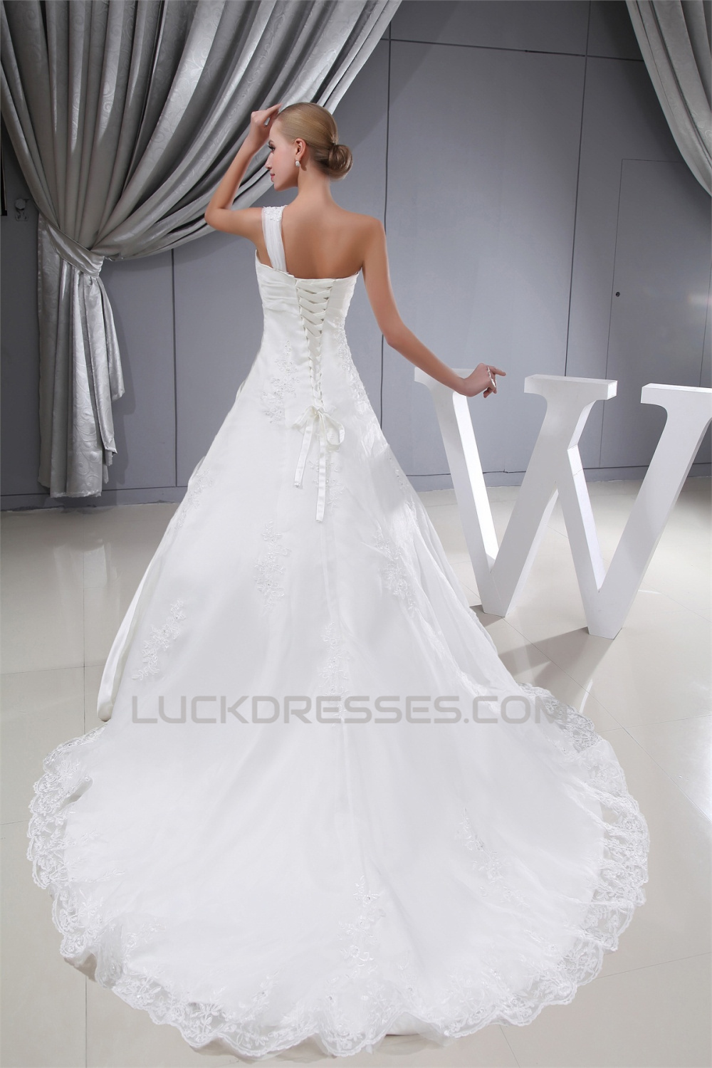-50% A-Line Satin Lace Organza One-Shoulder Wedding Dresses 2030392