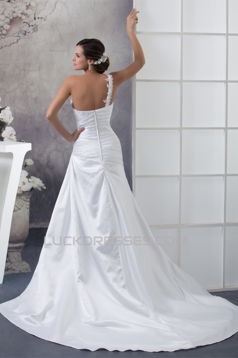 A-Line Satin Lace Sleeveless New Arrival One-Shoulder Wedding Dresses 2030237