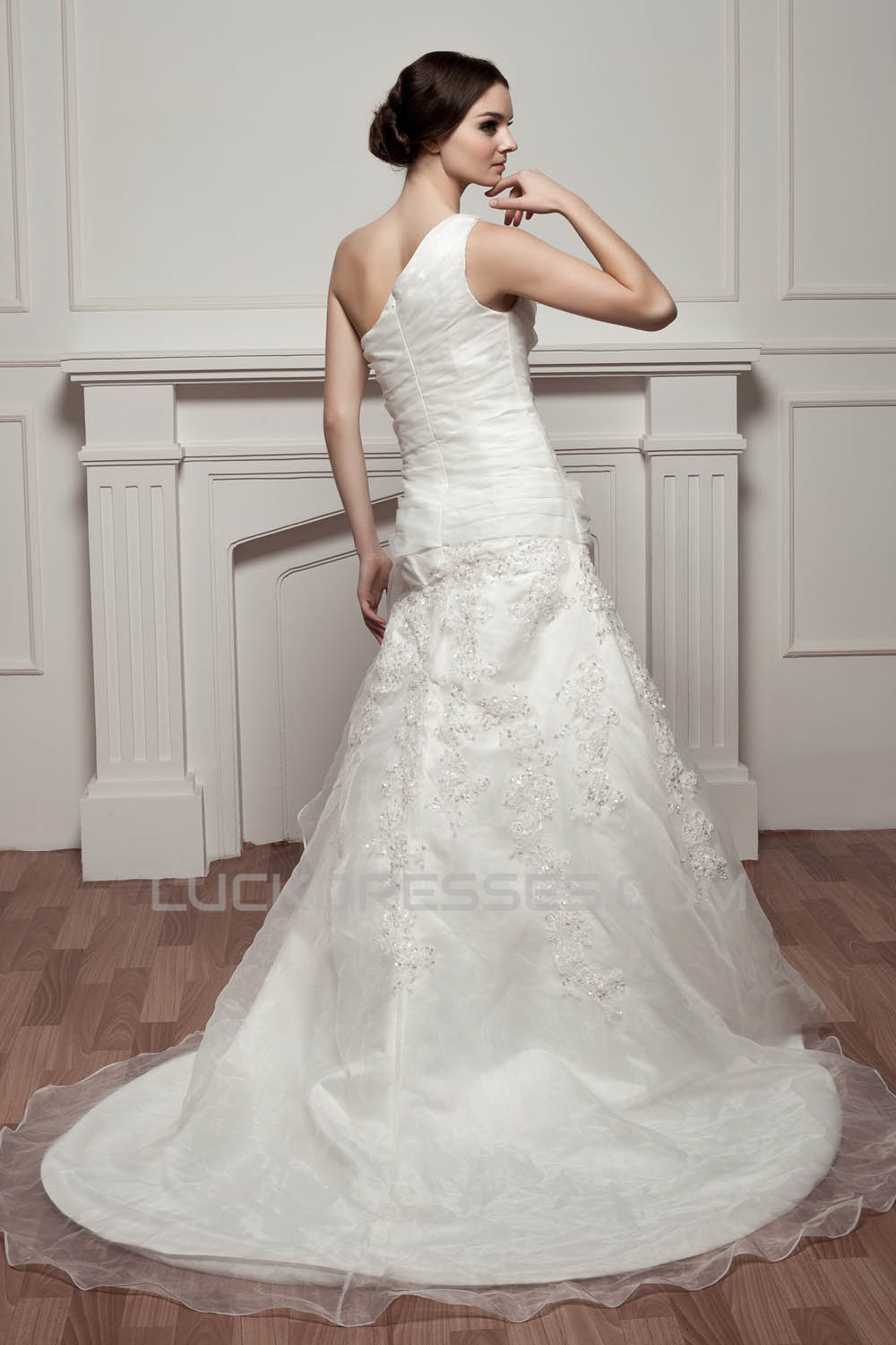 -50% A-Line Satin One-Shoulder Sleeveless Sweet Wedding Dresses 2030786
