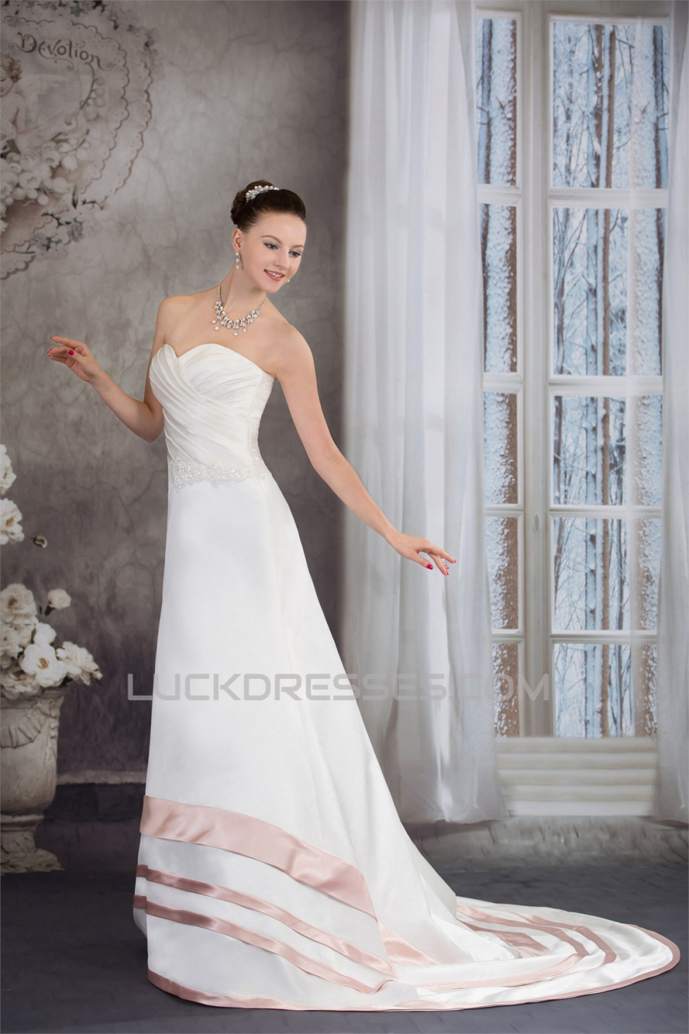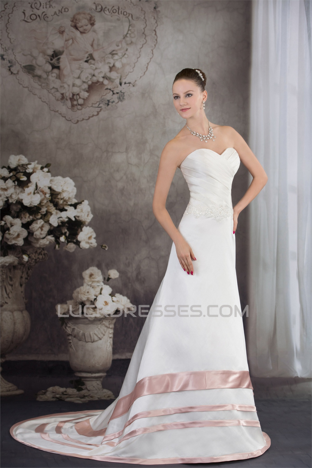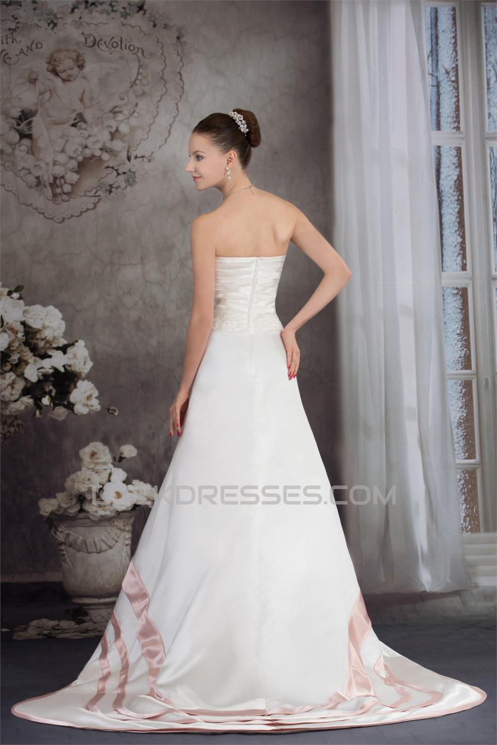 A-Line Satin Silk like Satin Sleeveless Wedding Dresses with Color 2030326