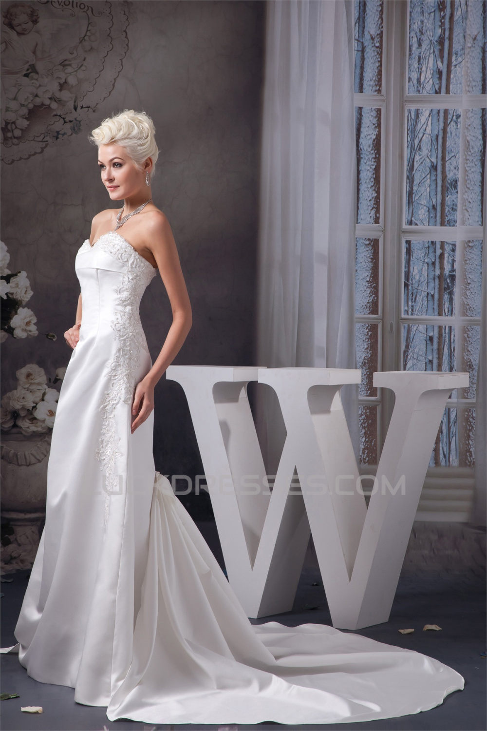 -50% A-Line Satin Sweetheart Sleeveless Sweet Wedding Dresses 2030698
