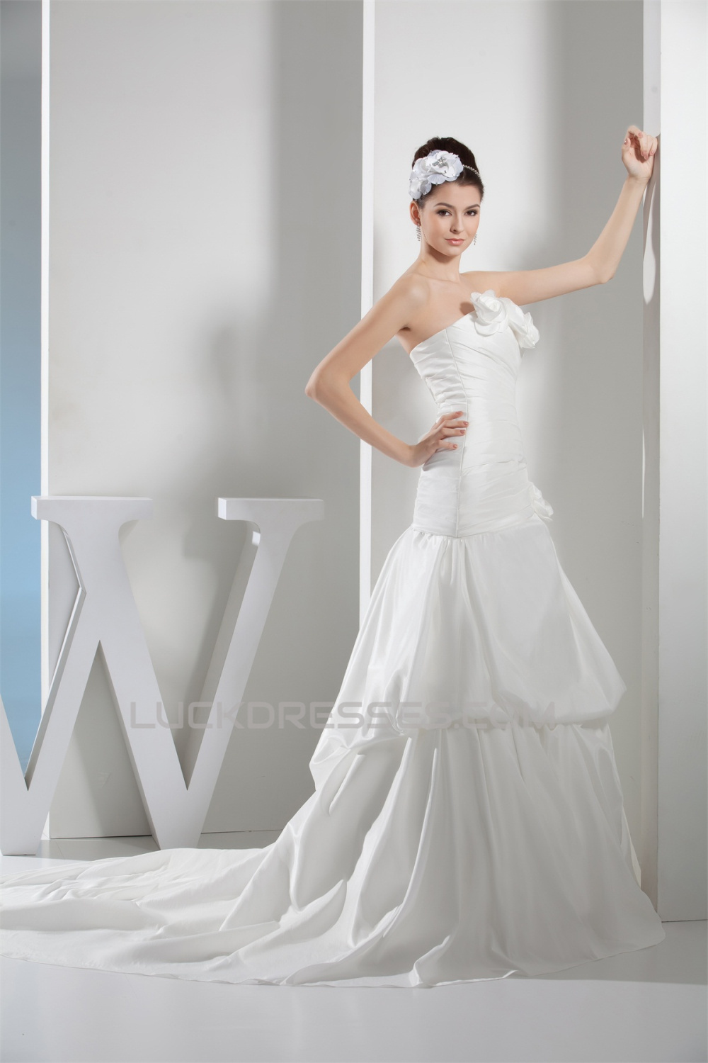 -50% A-Line Satin Taffeta Sleeveless Strapless Wedding Dresses 2030308