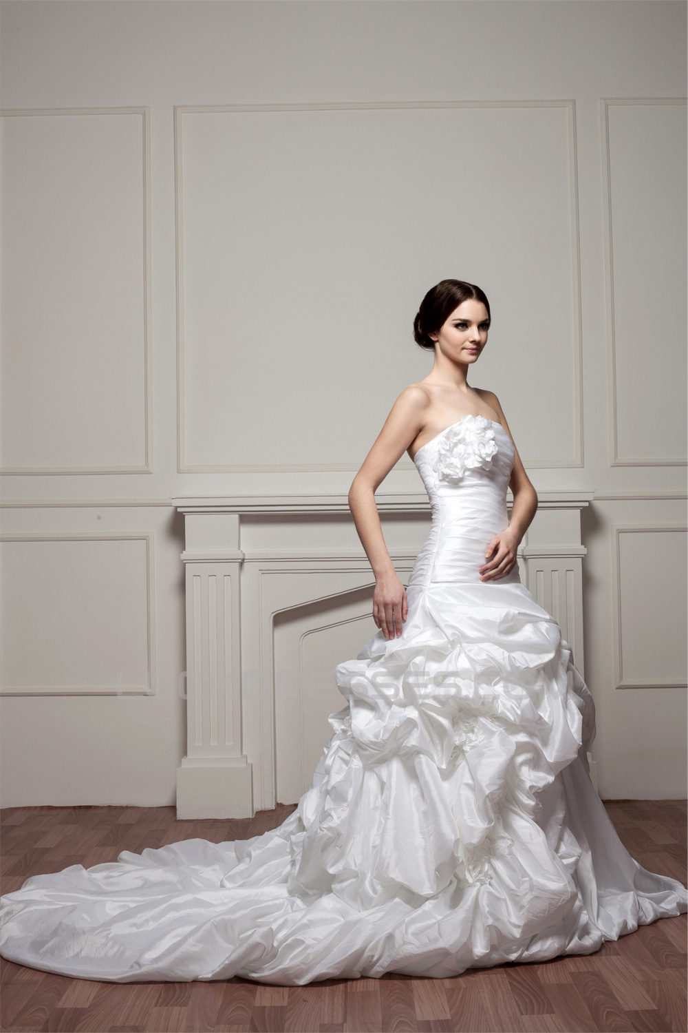 -50% A-Line Satin Taffeta Strapless Sleeveless Chapel Train Wedding Dresses 2030538