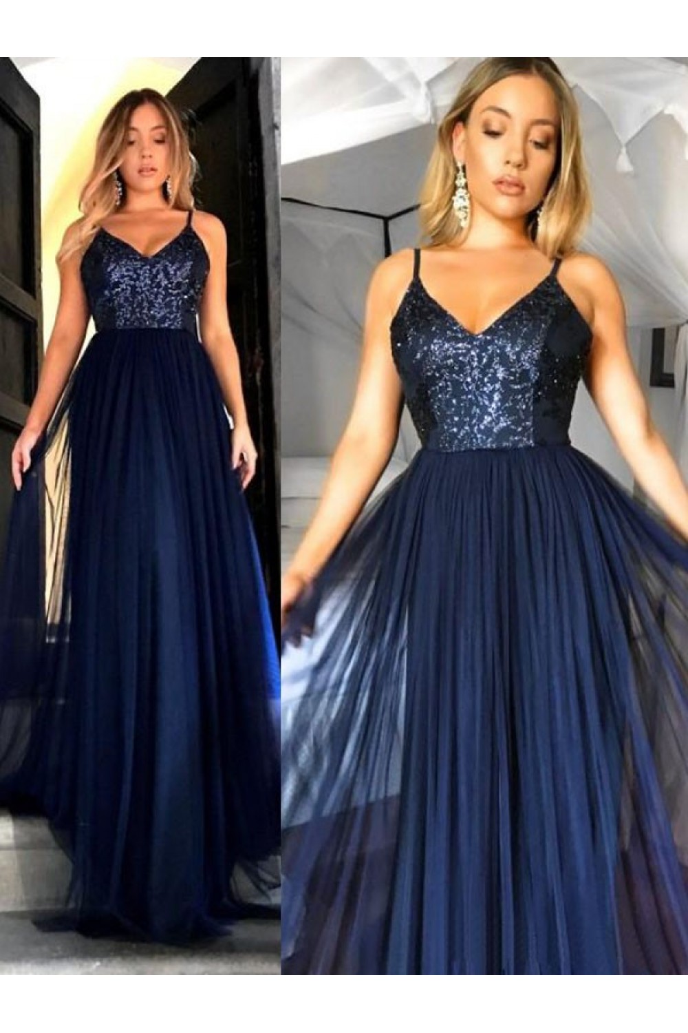 A-Line Sequins Tulle Long Prom Dress Formal Evening Dresses 601666