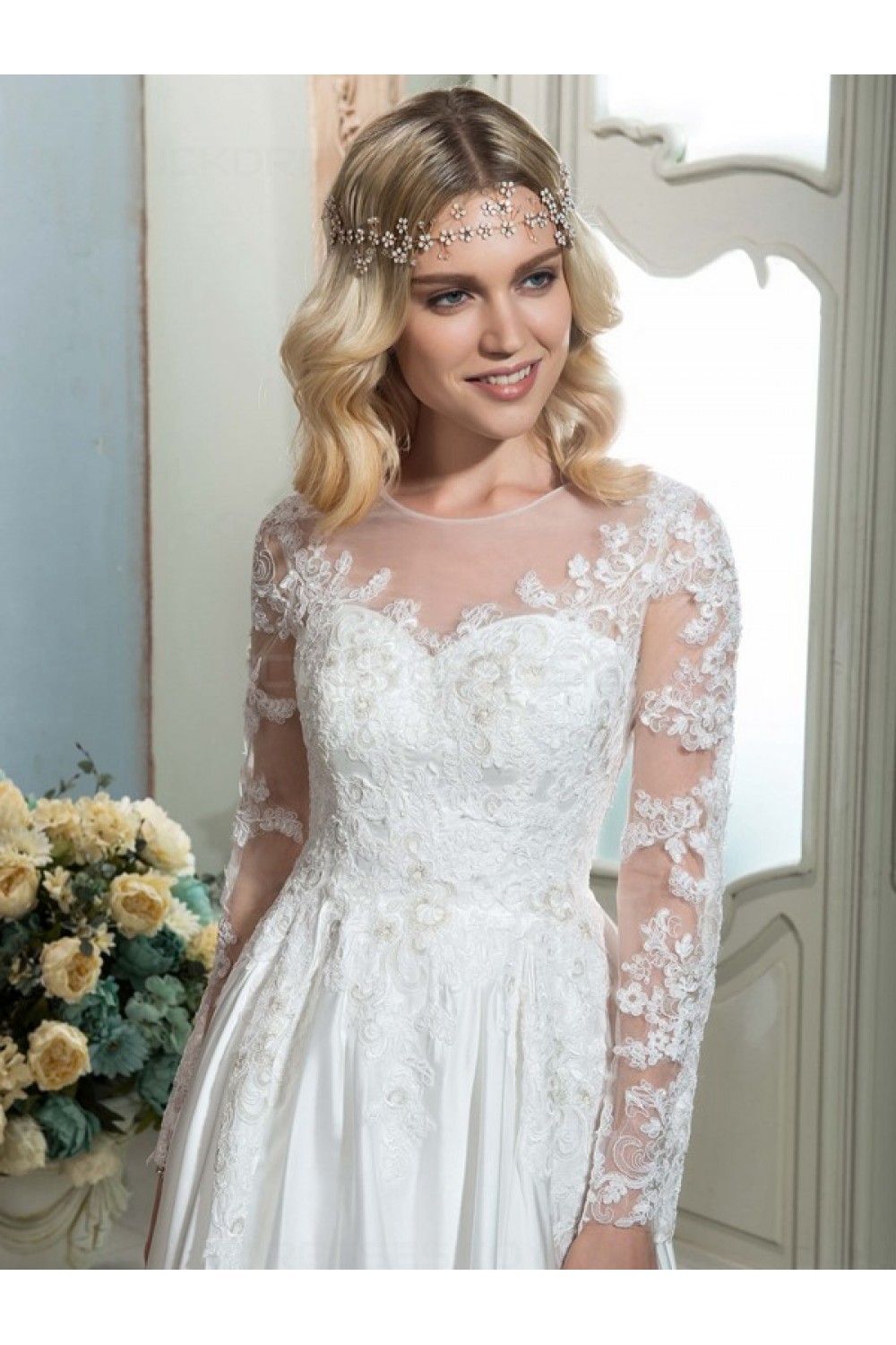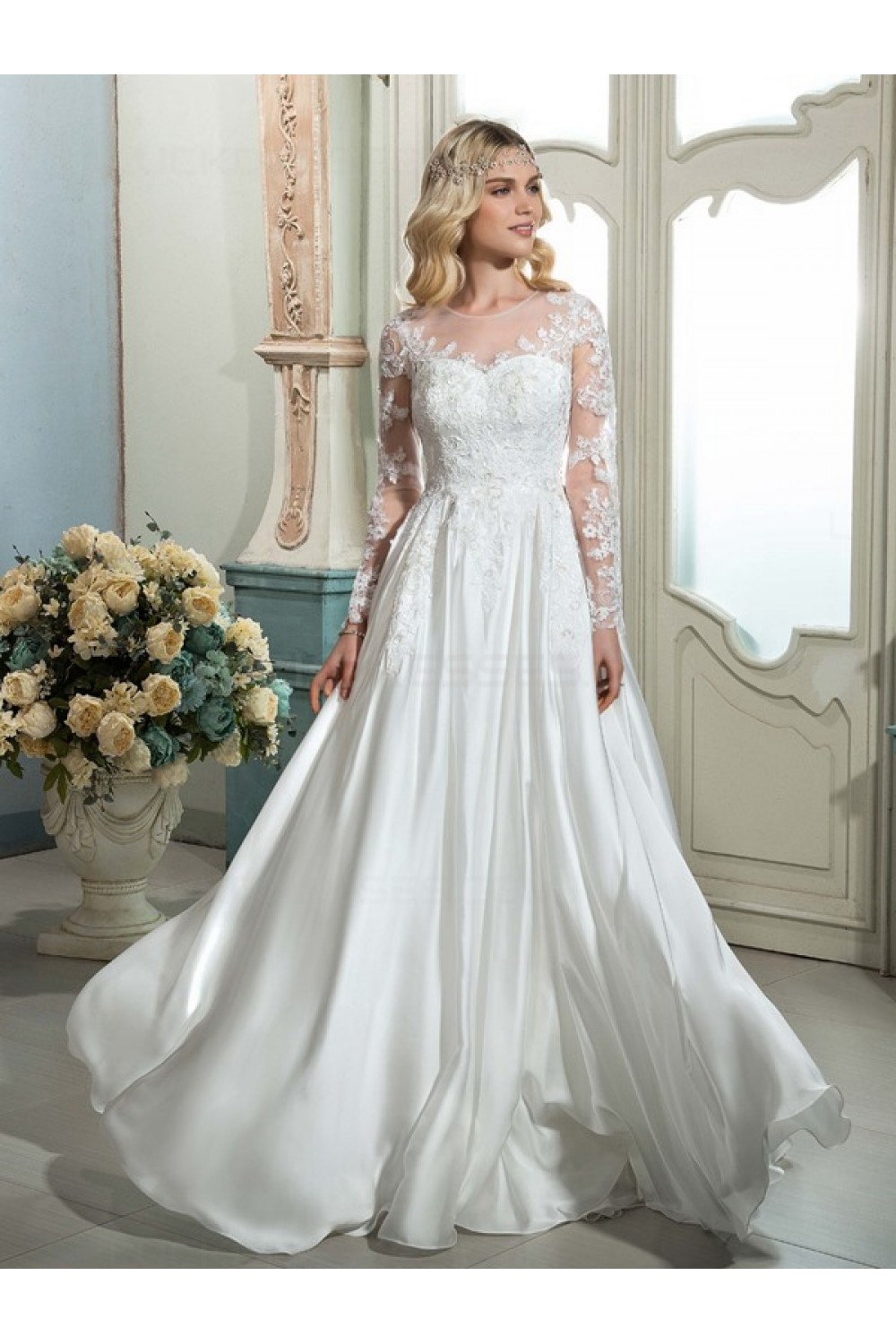 A-Line Sheer Lace Long Sleeves Wedding Dresses Bridal Gowns 3030187