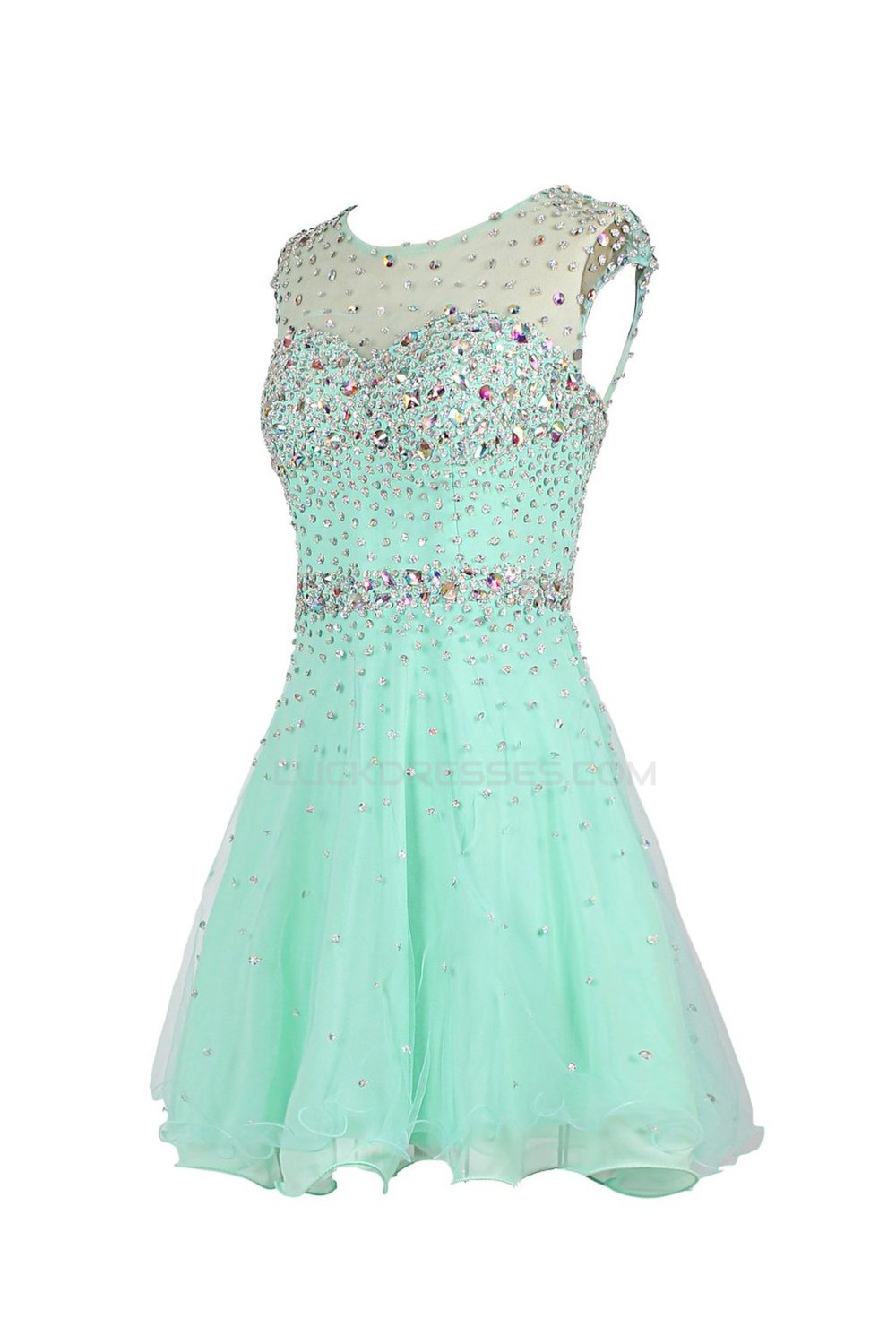 A-Line Short Blue Beaded Prom Evening Formal Party Dresses ED010426