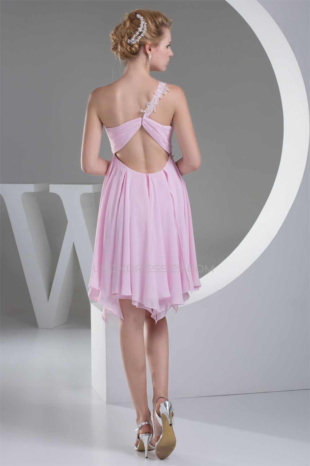 -60% A-Line Short/Mini One-Shoulder Chiffon Short Pink Bridesmaid Dresses Maternity Dresses 02010315