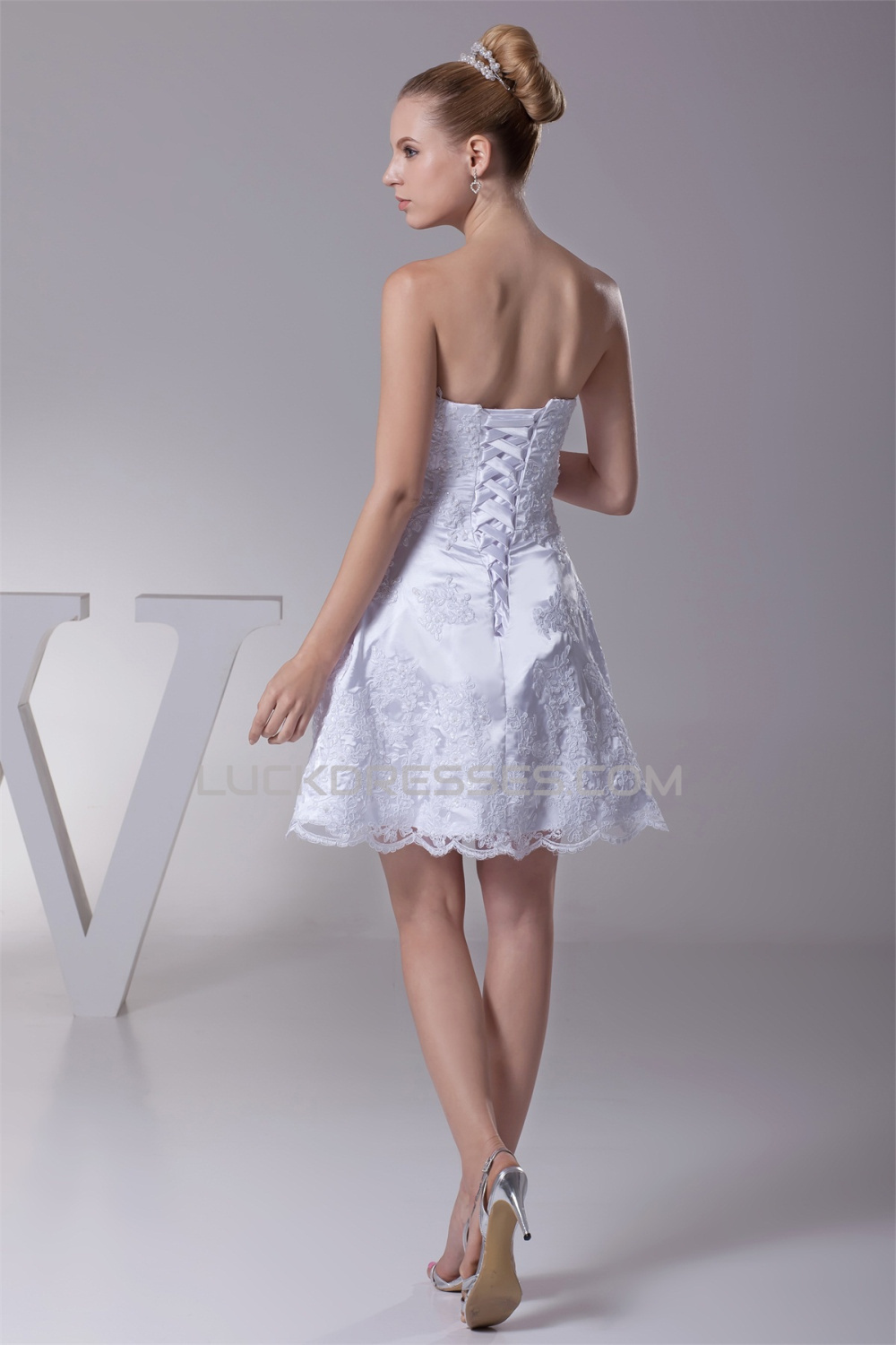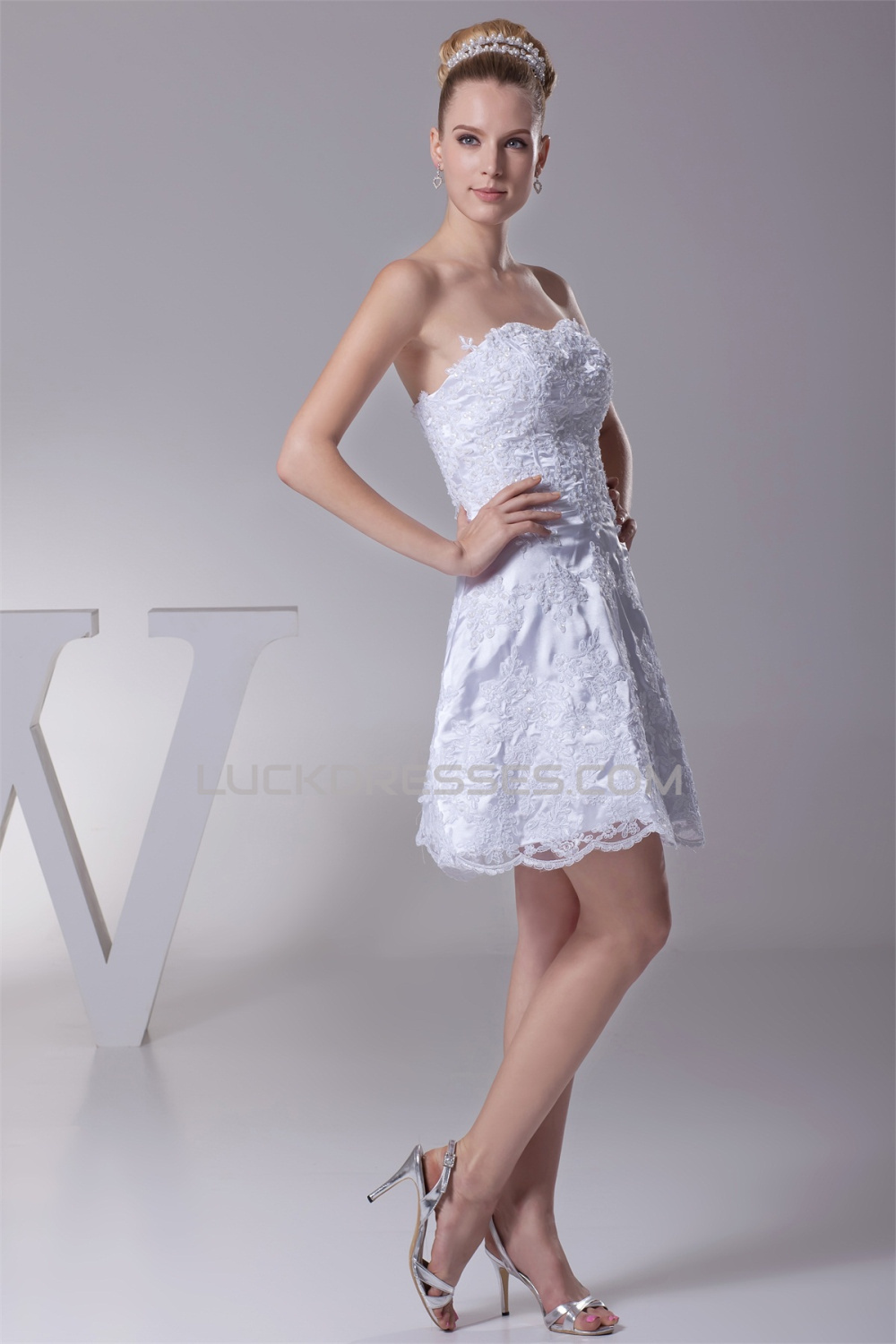 -50% A-Line Short/Mini Strapless Beaded Applique Reception Wedding Dresses 2031472