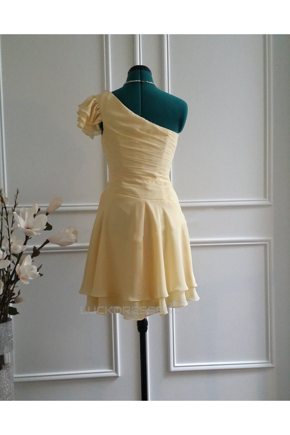 A-Line Short One-Shoulder Yellow Chiffon Bridesmaid Dresses/Wedding Party Dresses BD010773