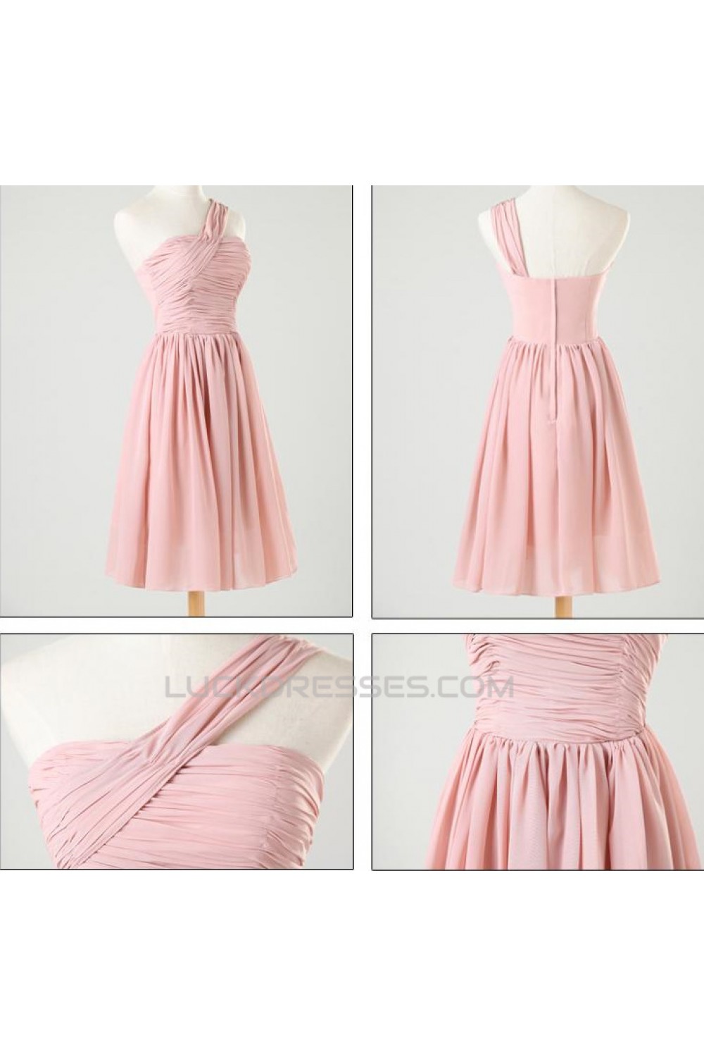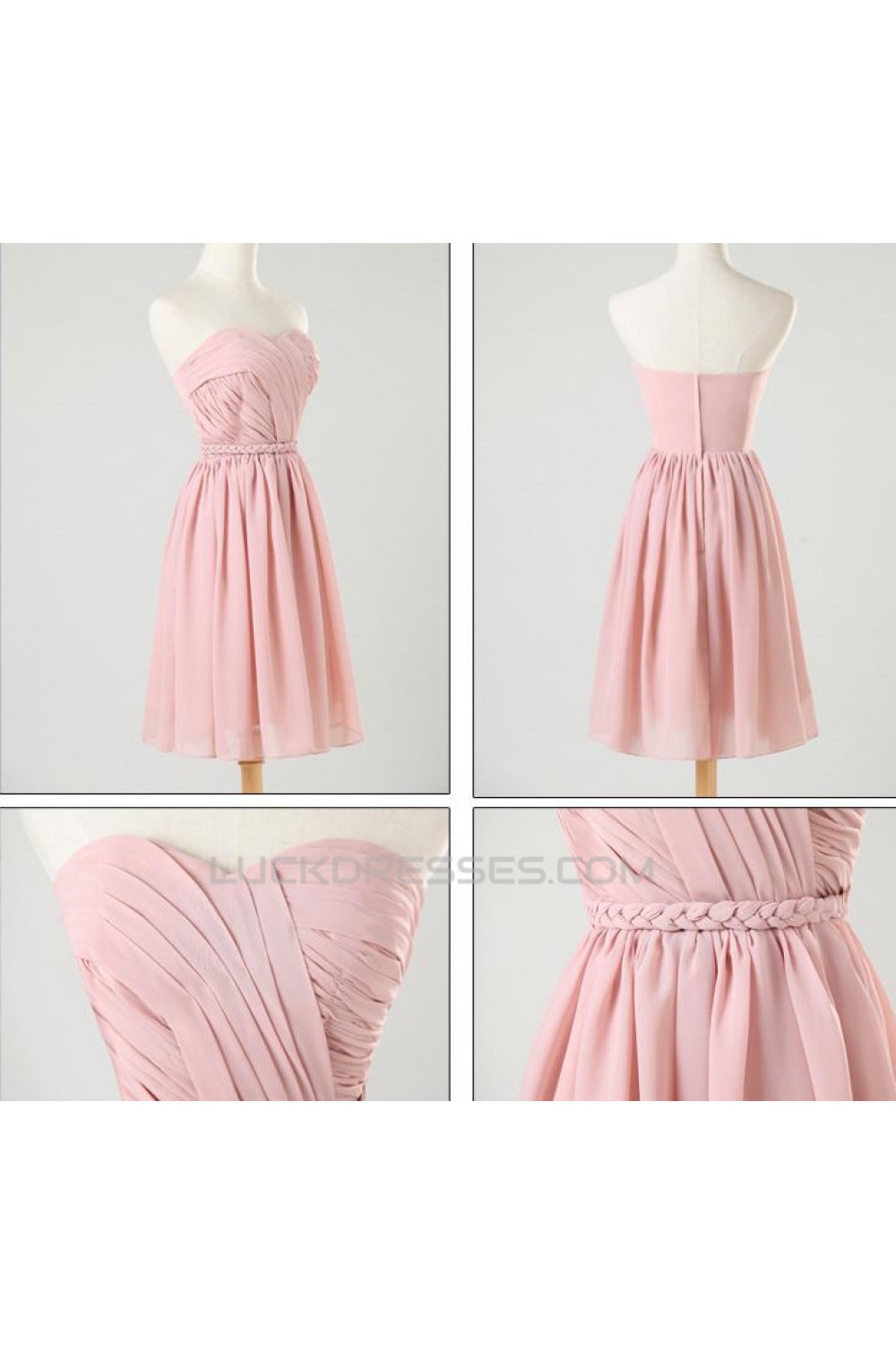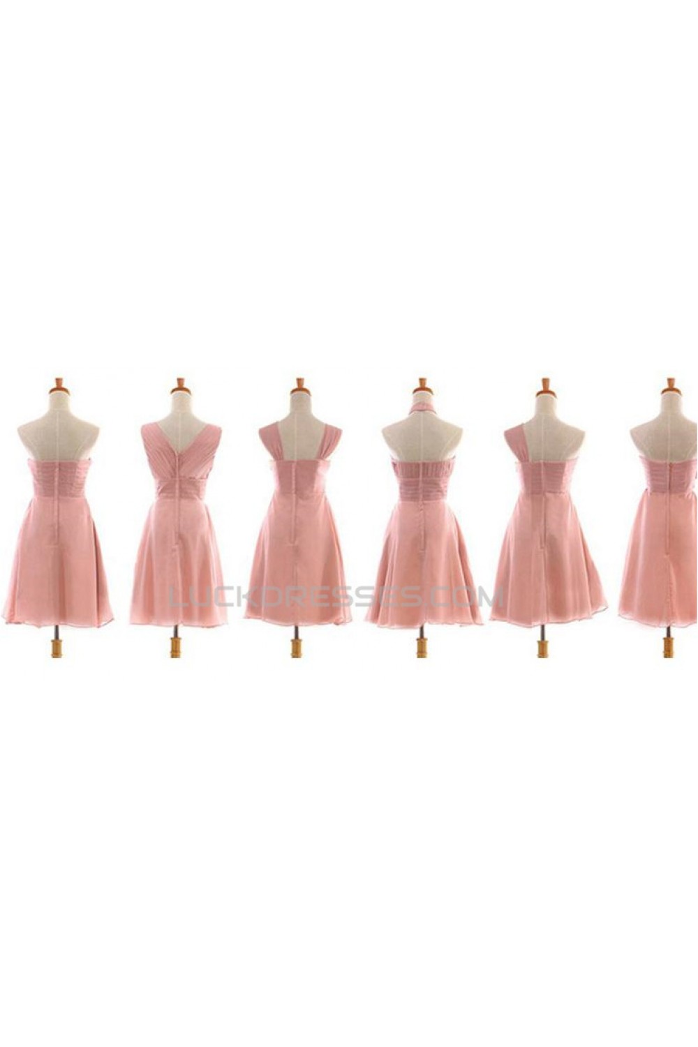 A-Line Short Pink Chiffon Prom Evening Formal Bridesmaid Dresses ED011202