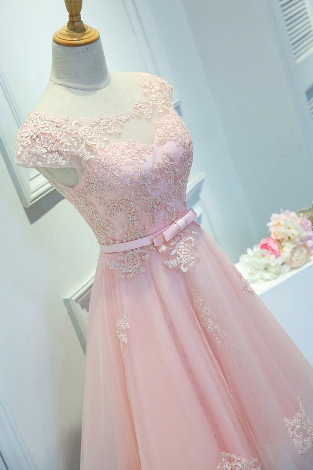 -56% A-Line Short Pink Lace Appliques Prom Dresses Formal Evening Dresses 601099