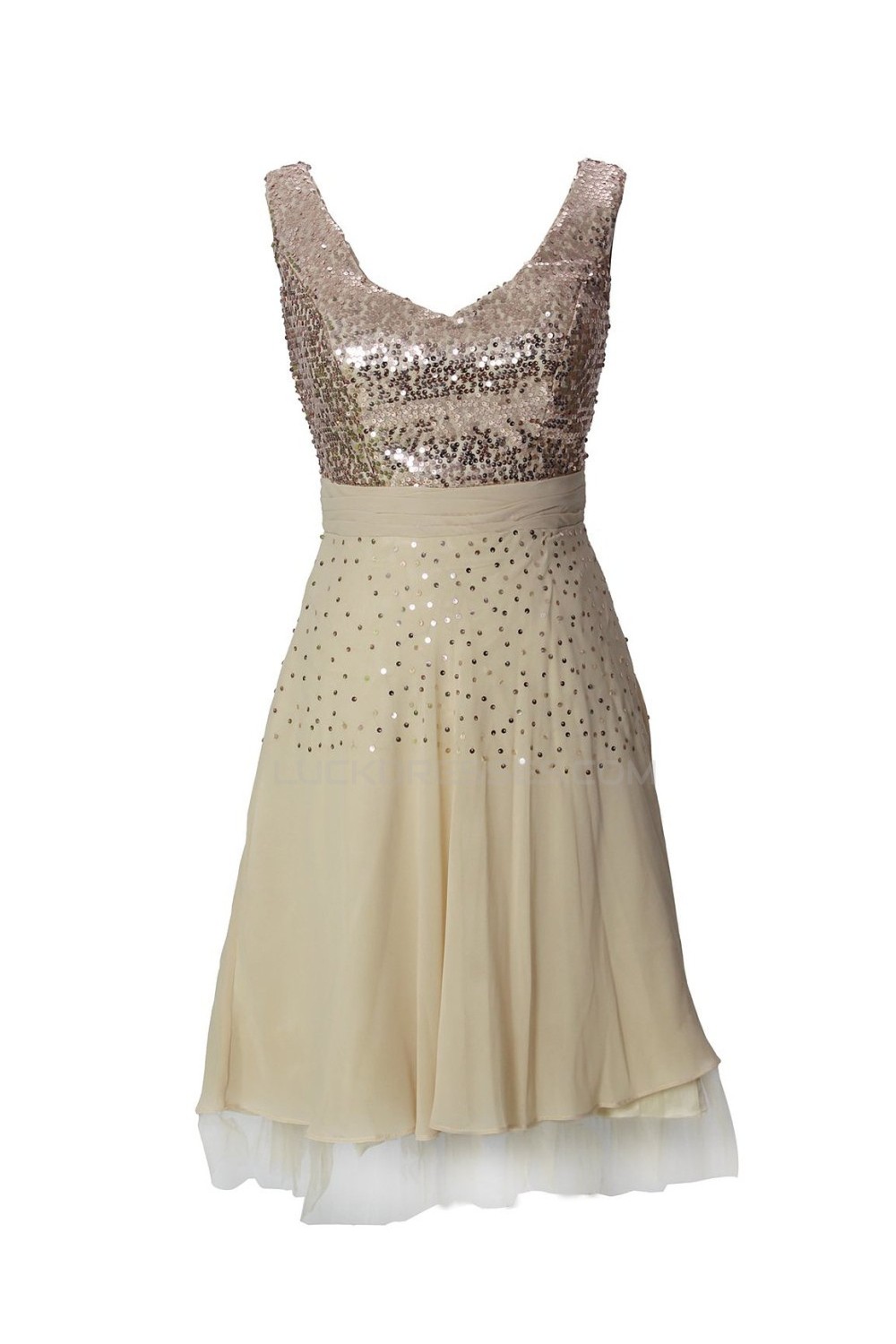A-Line Short Sequin Chiffon Prom Evening Formal Party Dresses ED010494