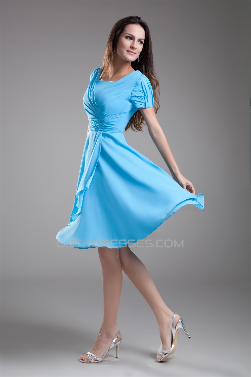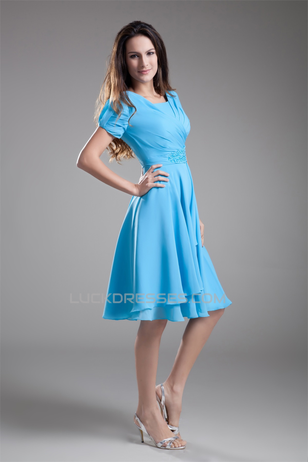 A-Line Short Sleeve Beading Cowl Chiffon Mother of the Bride Dresses 2040186