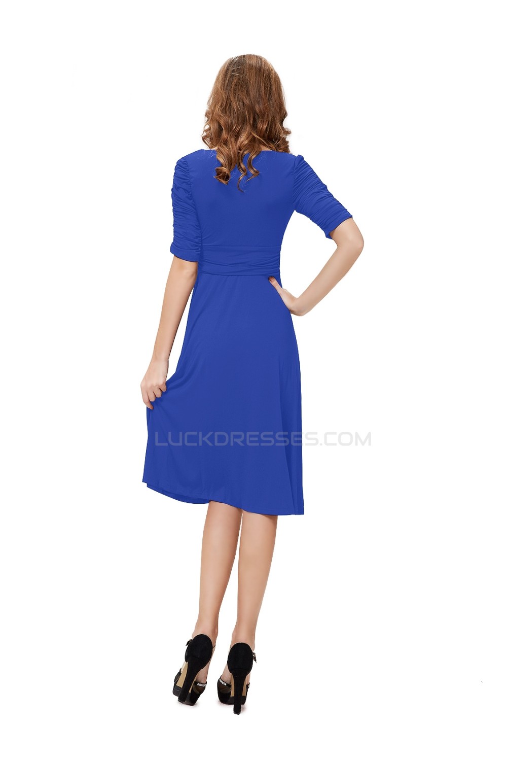 A-Line Short Sleeve Blue Prom Evening Formal Party Dresses ED010255