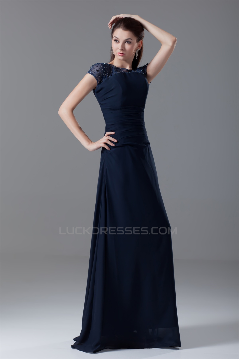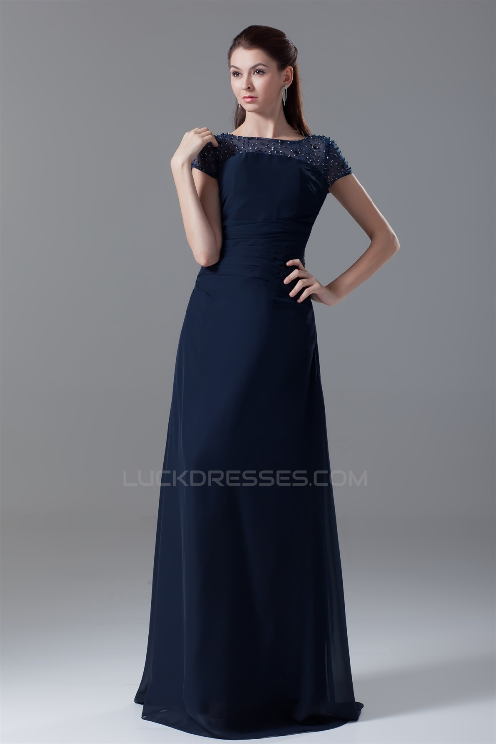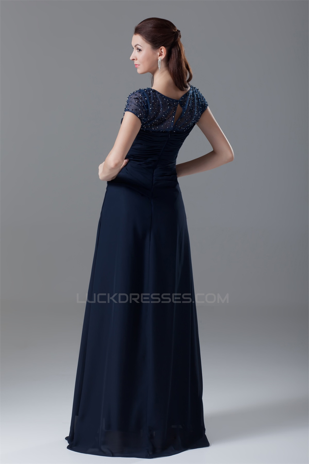 A-Line Short Sleeve Scoop Floor-Length Chiffon Mother of the Bride Dresses 2040190