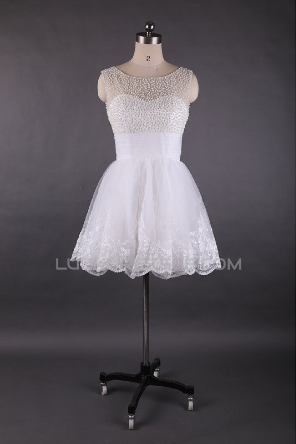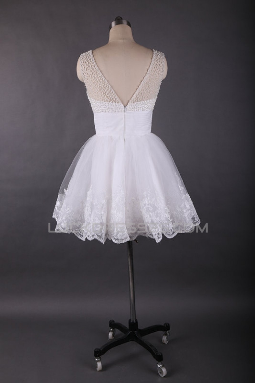A-Line Short White Beaded Prom Evening Formal Dresses ED011449