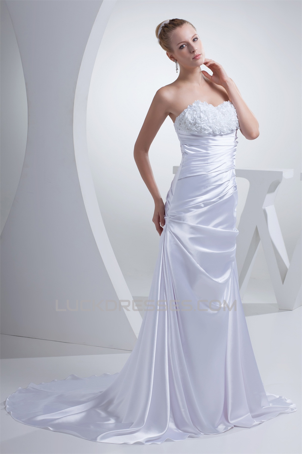 A-Line Silk like Satin Sweetheart Wedding Dresses 2030090