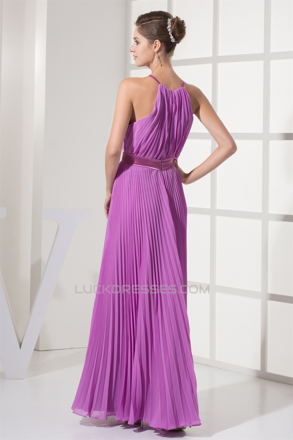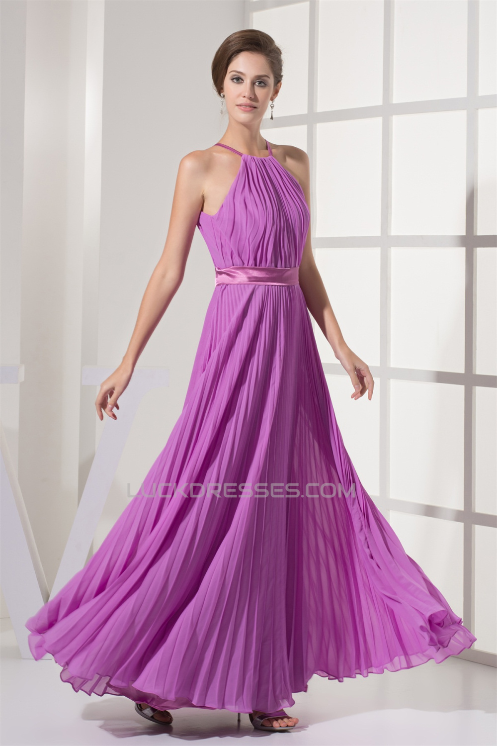 A-Line Sleeveless Pleats Floor-Length Long Bridesmaid Dresses 02010225