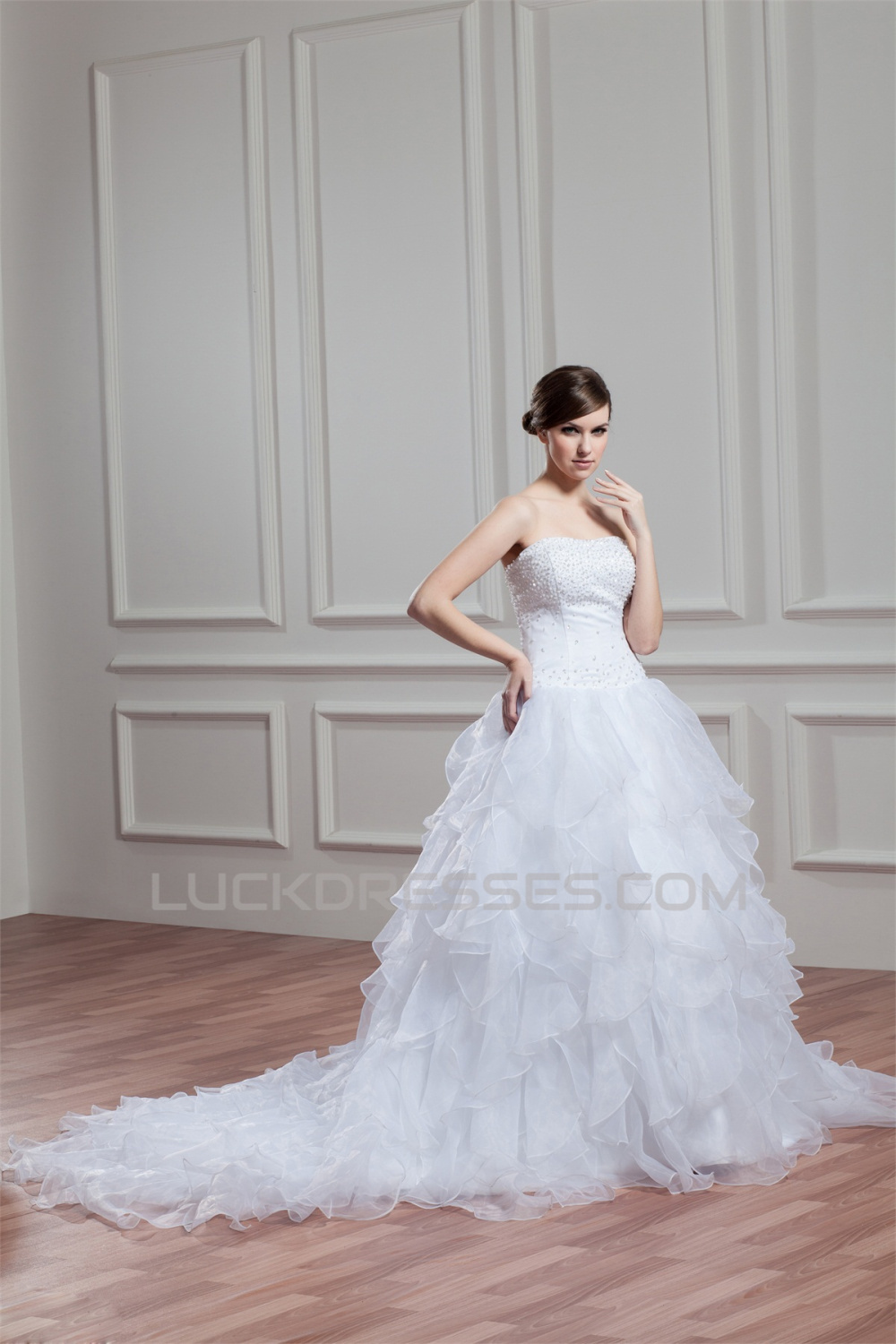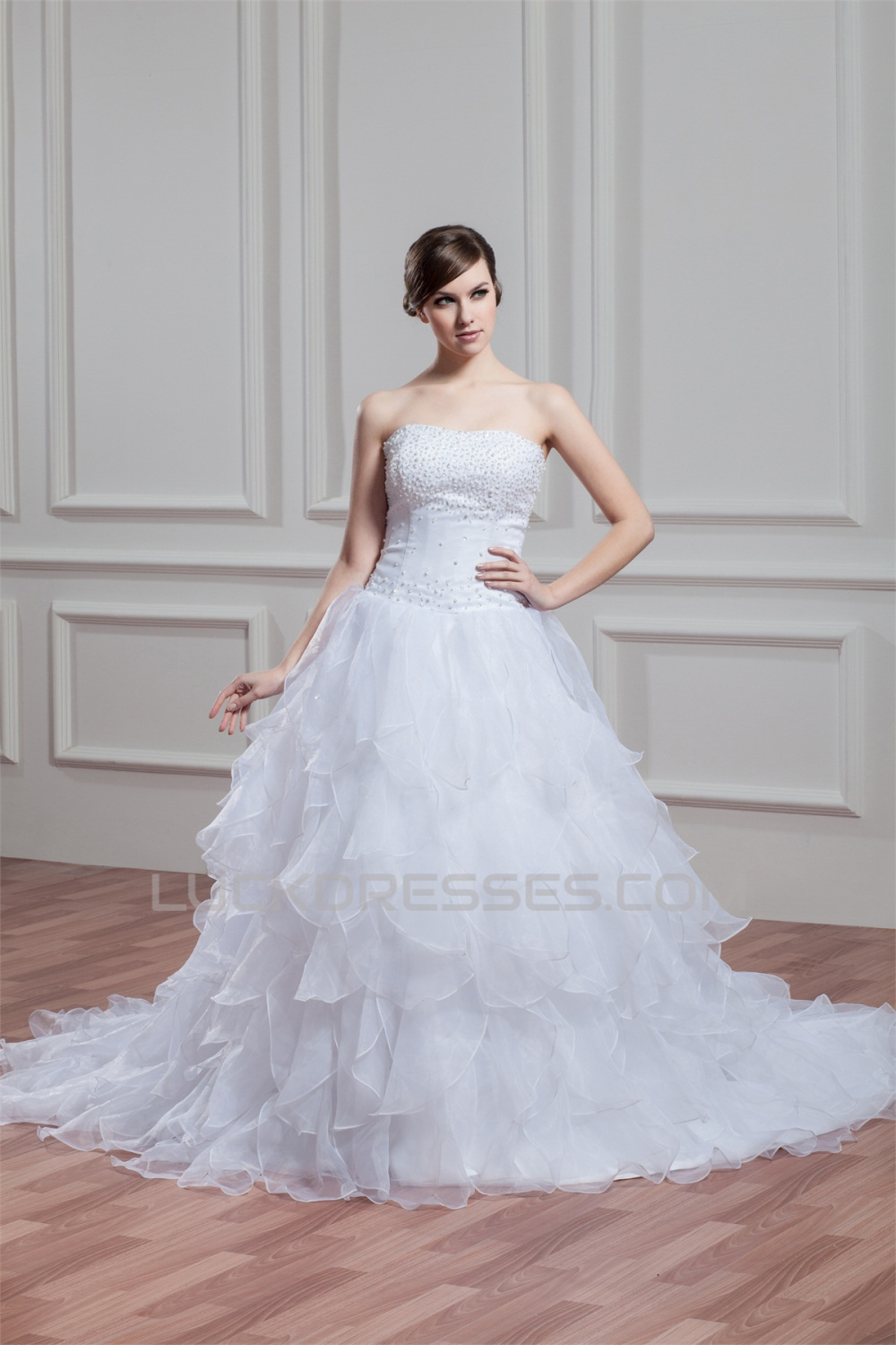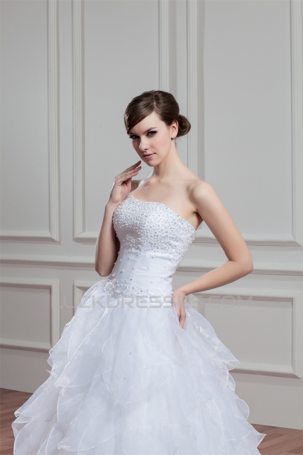 -50% A-Line Sleeveless Satin Organza Soft Sweetheart Beaded Wedding Dresses 2030544