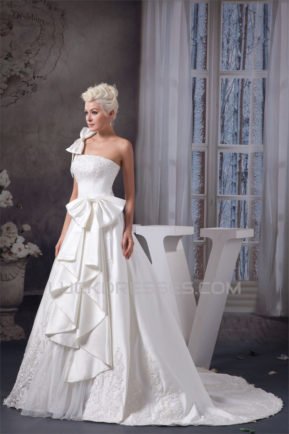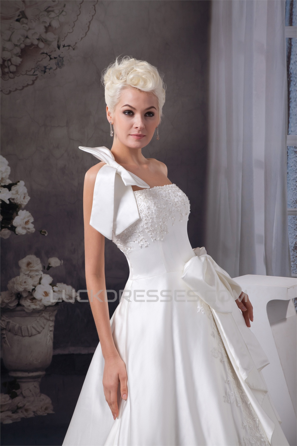 -50% A-Line Sleeveless Satin Taffeta One-Shoulder Lace Wedding Dresses 2030545