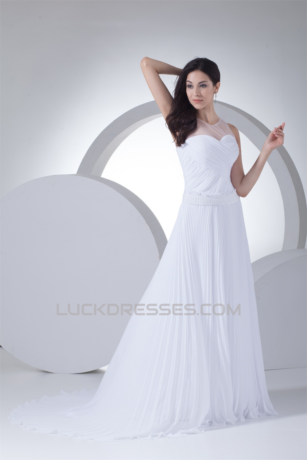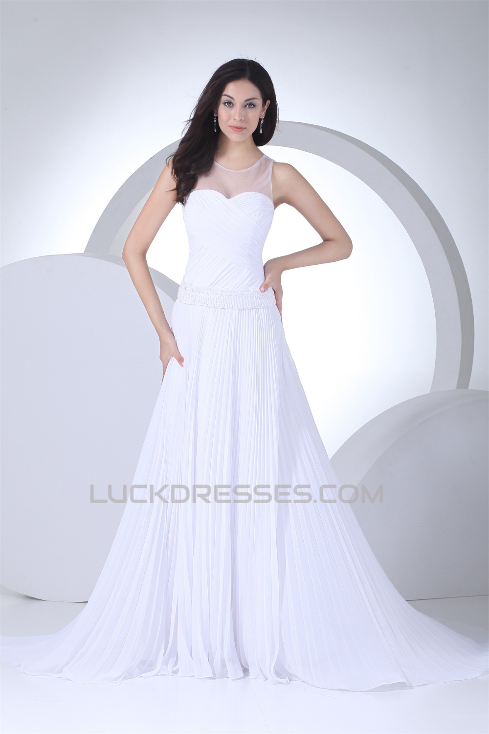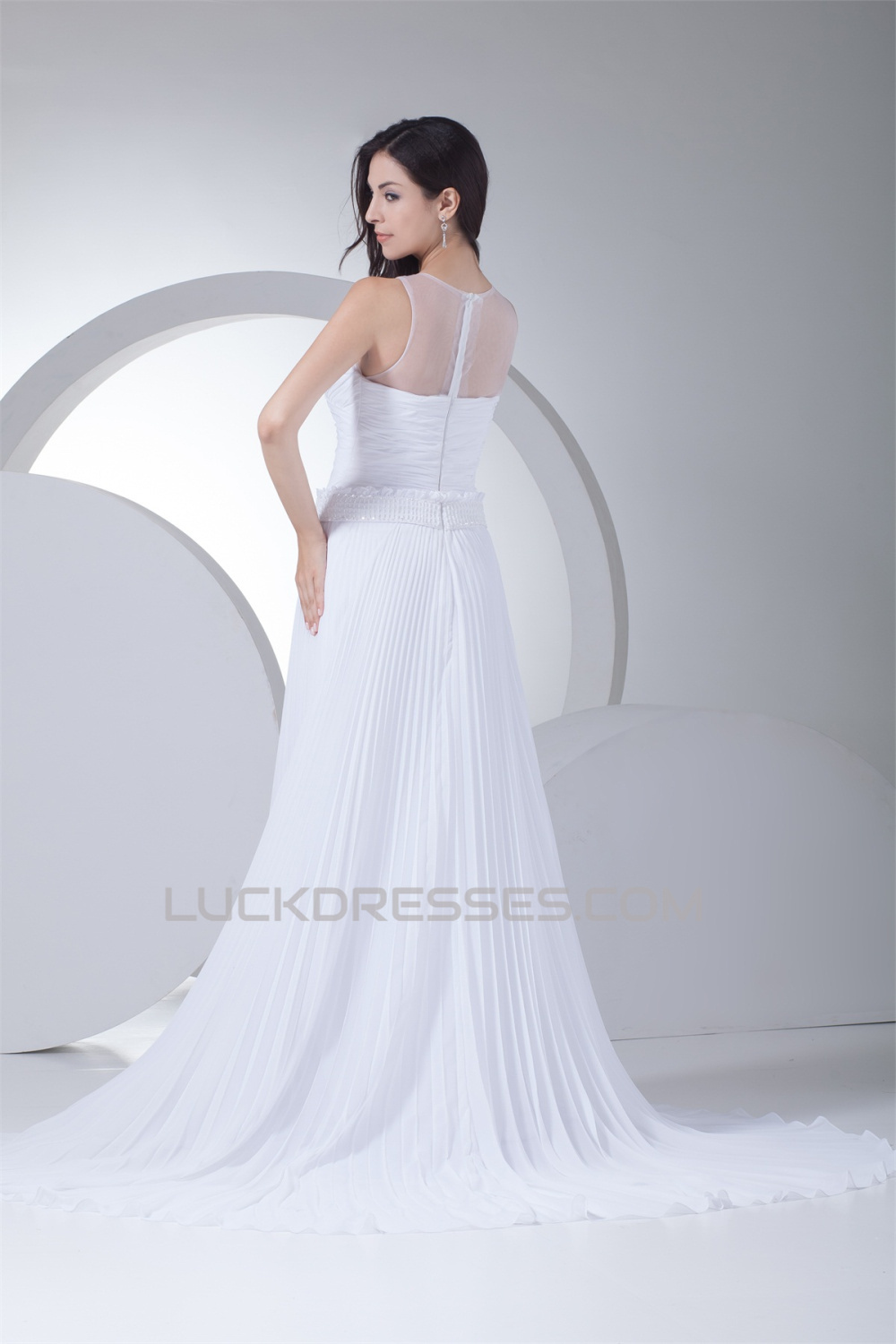 A-Line Sleeveless Scoop Chiffon Silk like Satin Wedding Dresses 2030311